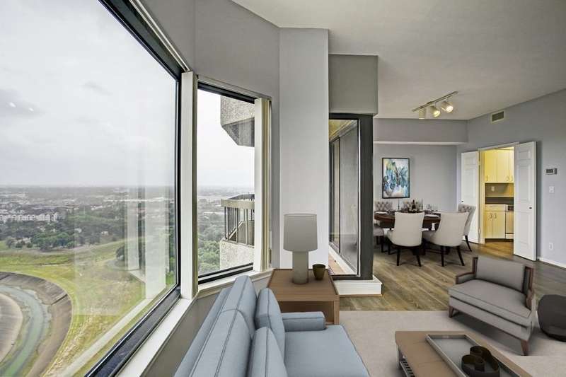The Spires! Sought after 1 bedroom/1 bathroom full service building The Spires! Amazing views of Downtown, Hermann Park, and Rice. The flooring & countertops have been updated. Valet parking, 24-hour security service, 24-hour concierge, grand fitness center/pool. Close proximity to the Texas Medical Center, the Houston Zoo, Hermann Park, museums, Rice University, Rice Village, and all Houston has to offer. One of the lowest maintenance fees in the city! All per Seller