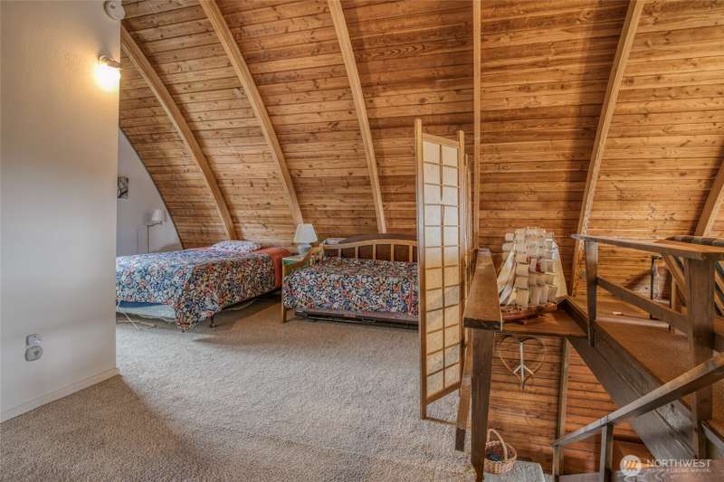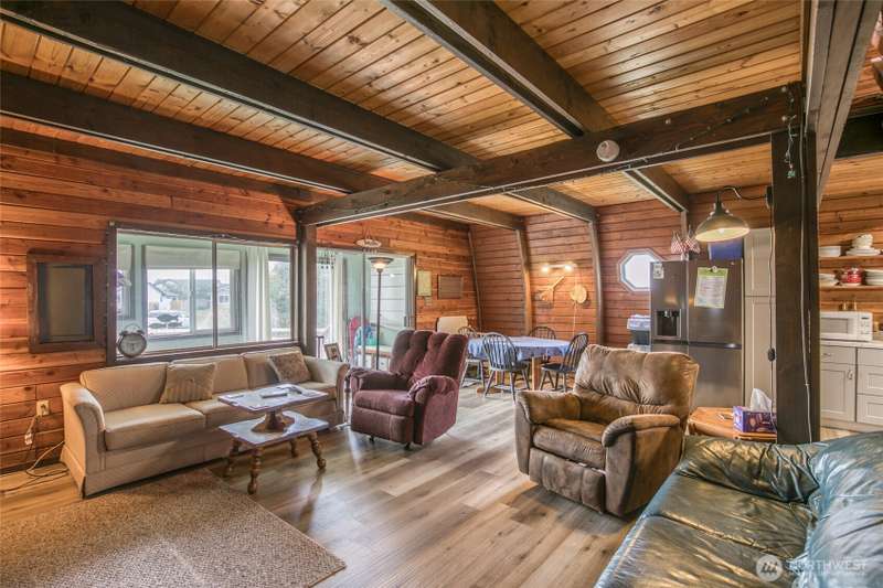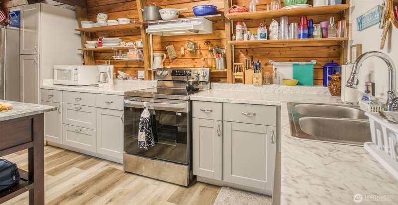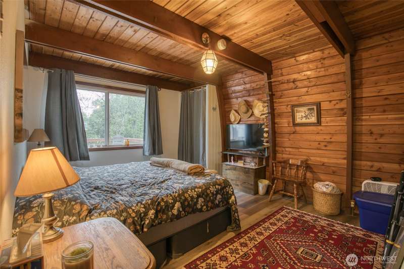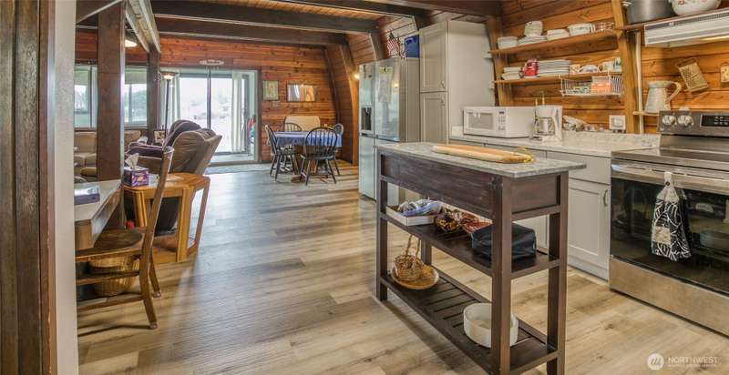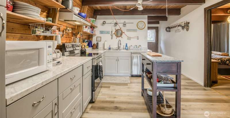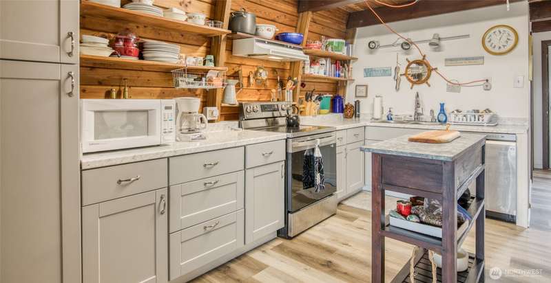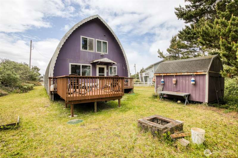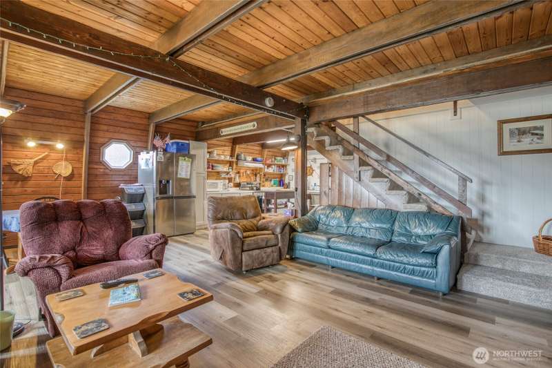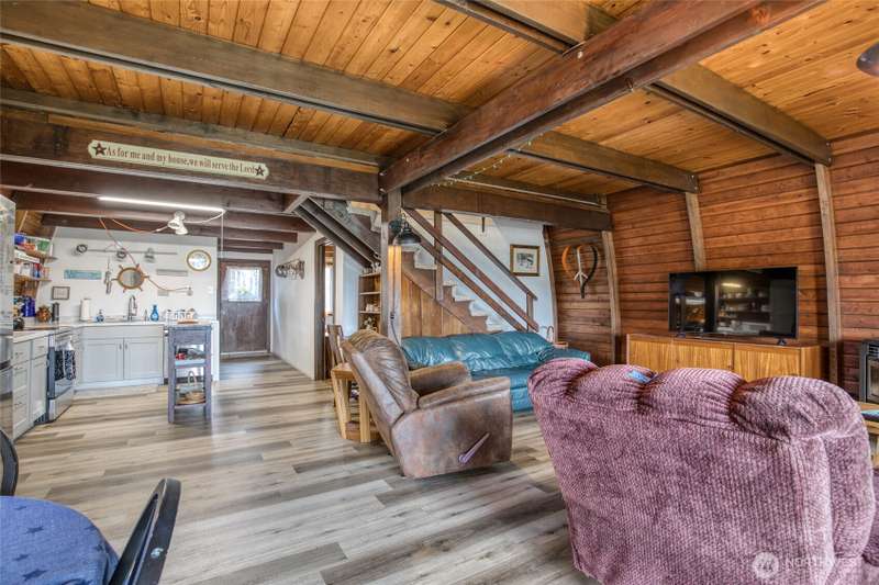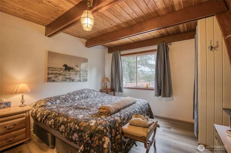 This vintage getaway is the cozy beach retreat you've been wanting to make yours. Don't just pass by—step inside to appreciate its spaciousness, encompassing over 1,900 sq ft. The main level has the kitchen, a bedroom and, a half bath. The upstairs open loft comfortably sleeps six people. Lovingly maintained, this home features new decks, a new kitchen, and new appliances. It is the perfect setting for beach parties with its inviting fire pit and efficient pellet stove. Just a few blocks from the beach where your pooch can run leash-free, this home comes with or without all furnishings. At $195 per year, you (& guests) may enjoy any of the six community club sites featuring indoor & outdoor pools, docks, playgrounds, and sports courts.