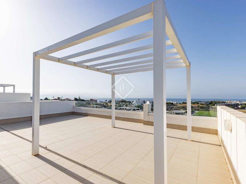 Discover a truly exceptional Mediterranean lifestyle with this beautiful and modern duplex penthouse. The apartment features 3 bedrooms: a bright main bedroom with en-suite bathroom and an additional cloakroom, 2 guest bedrooms and a family bathroom to share. All bedrooms have built-in wardrobes and sun blinds. The entrance hall leads to the open plan fully equipped kitchen and a sunny living/dining room with large floor to ceiling sliding doors flowing effortlessly onto the very generously sized south-facing terrace and amazing rooftop terrace, with breathtaking, panoramic views over the Mediterranean and African coastline. Located in Las Olas, the stunning boutique development of 48 contemporary apartments, is one of the most desirable areas of West Estepona, a prime location, within a few minutes' walk to the beach, nearby amenities, as well as some of the best golf courses on the Costa del Sol. There is a salt water pool in the community and an outdoor fitness area nestled in tropical gardens where you can relax, soak up the Andalusian sun, while also staying in shape. The apartment includes an underground parking space and storeroom within the gated community. A fantastic property with unbeatable views and top location.