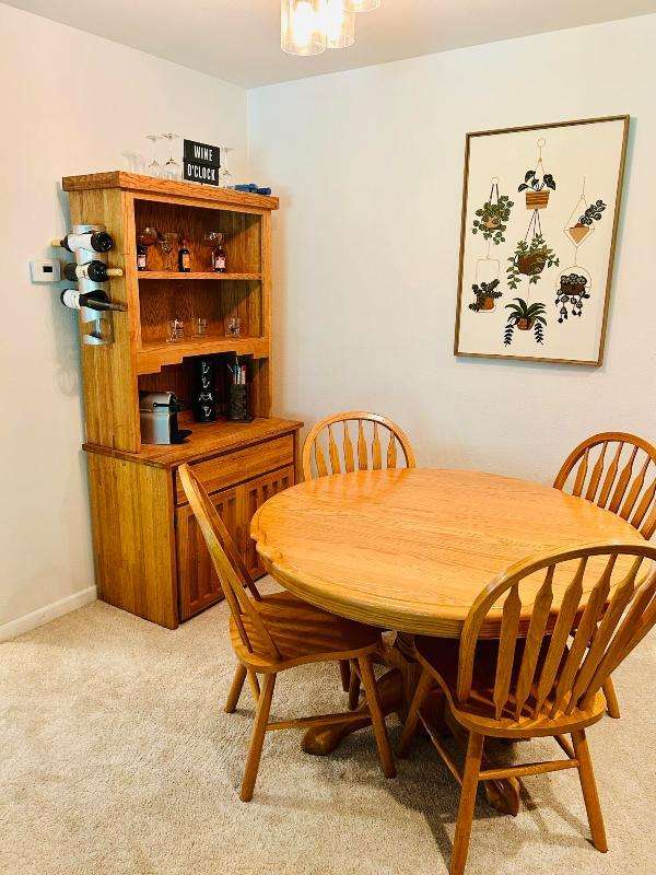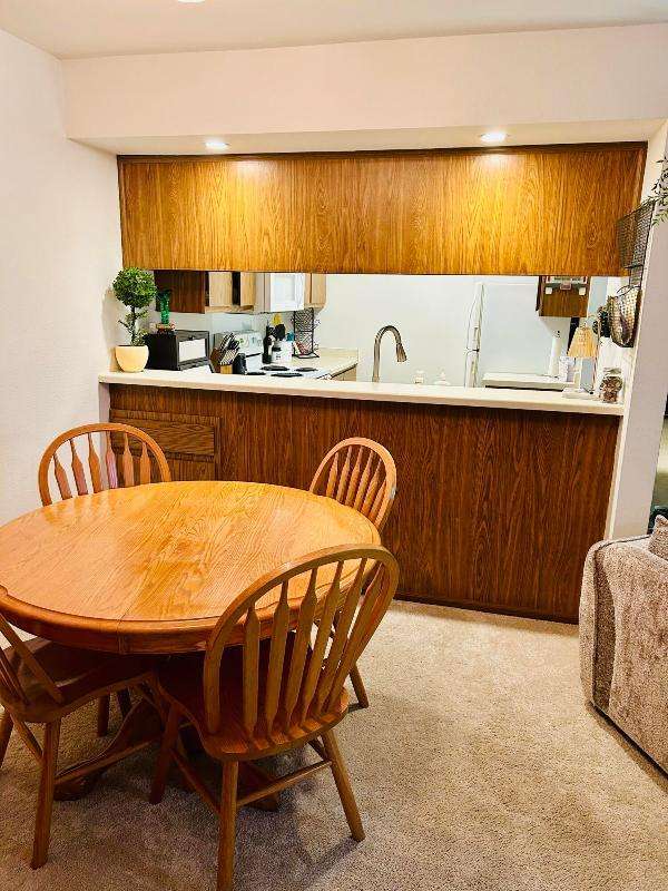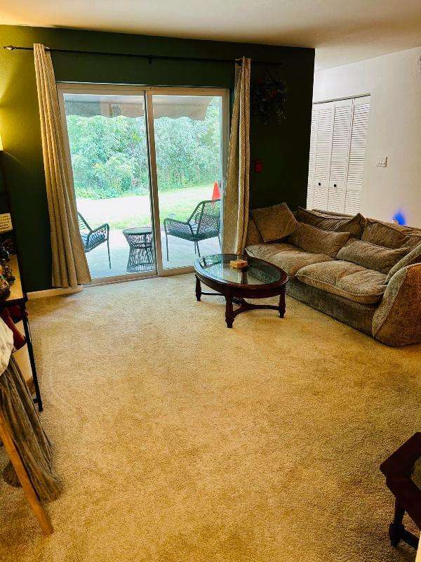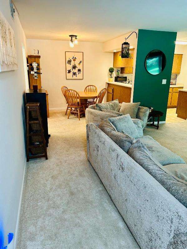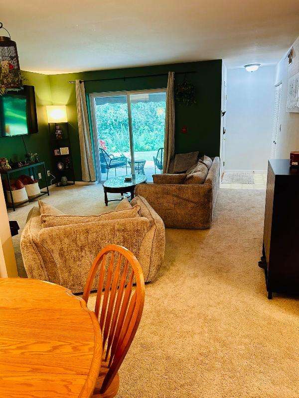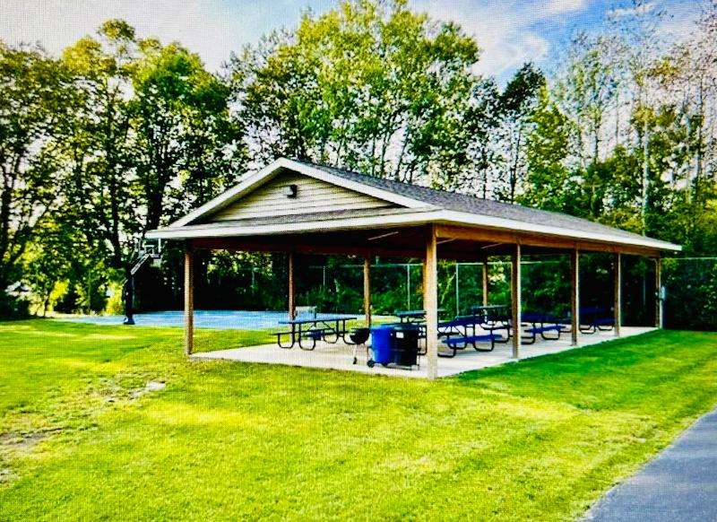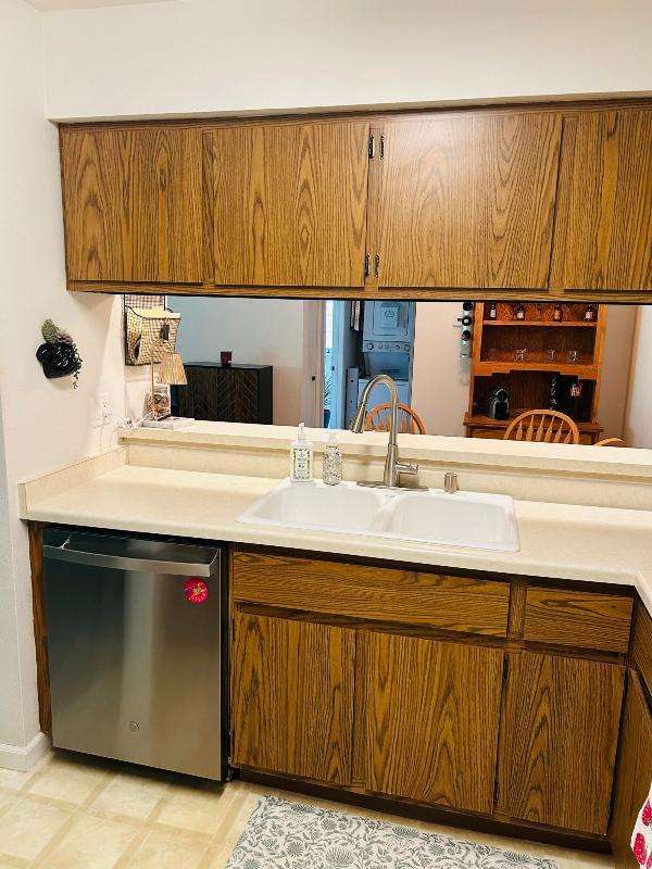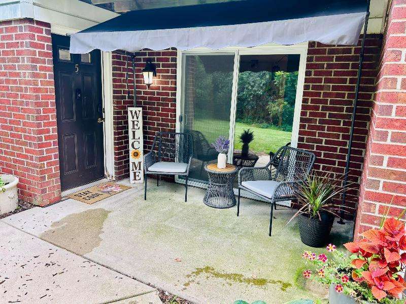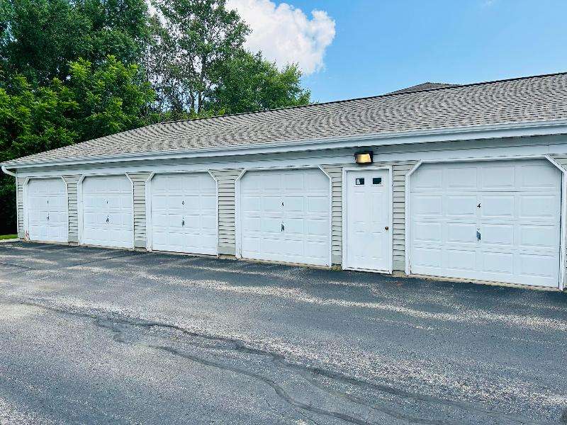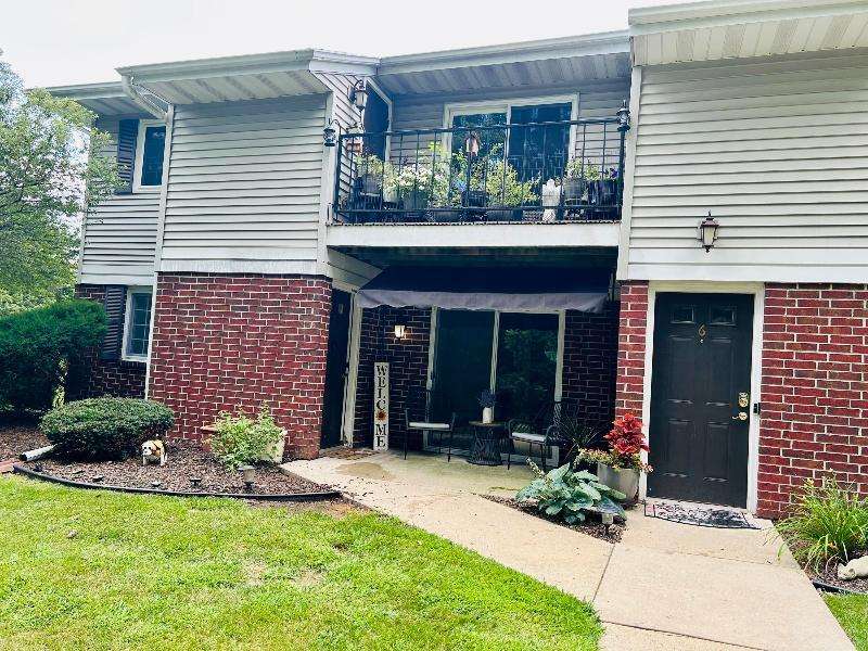 Very private,w/wooded area adjacent to your unit. First floor end unit. Split floor plan with spacious bedrooms and baths on either side, and walk in closets. In unit Laundry. Living room offers patio doors to your private patio, overlooking the woods. Detached 1 car garage just around the corner of your unit. I parking space reserved in front of unit and guest parking. Common areas are nicely taken care of which includes a dog park, covered picnic area and pool. Tennis and Basketball courts. Recent upgrades to kitchen, bath and flooring. 2 new windows and patio door 2024. New Dishwasher and garage door=2025, shower heads, freshly painted. Plank flooring was bought for the kitchen, but not put in. Recently carpet cleaned. Quick closing is an option. L/R will be painted prior to closing.