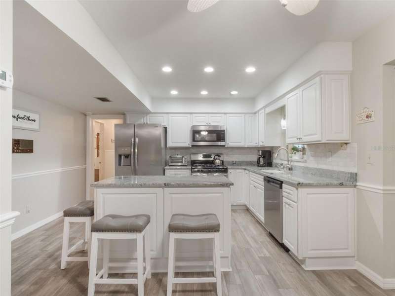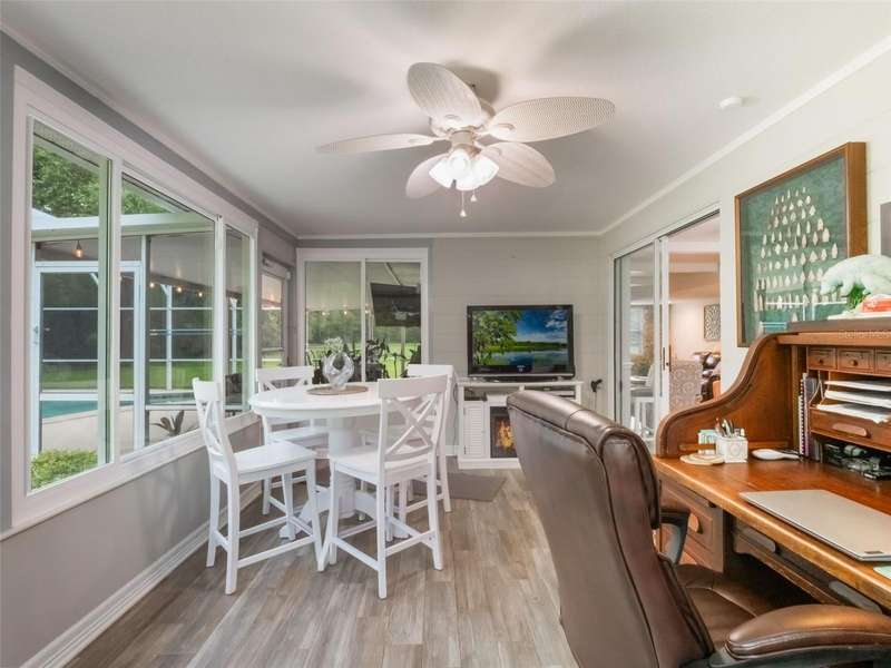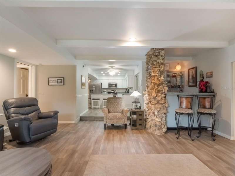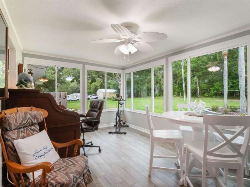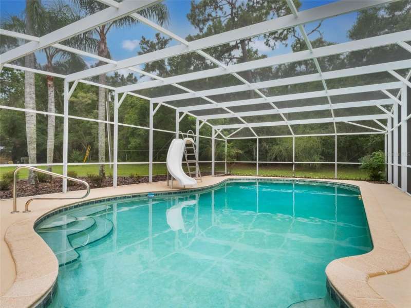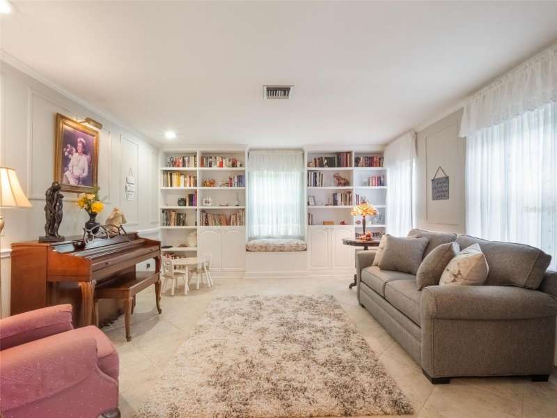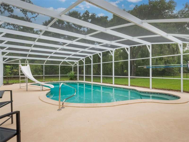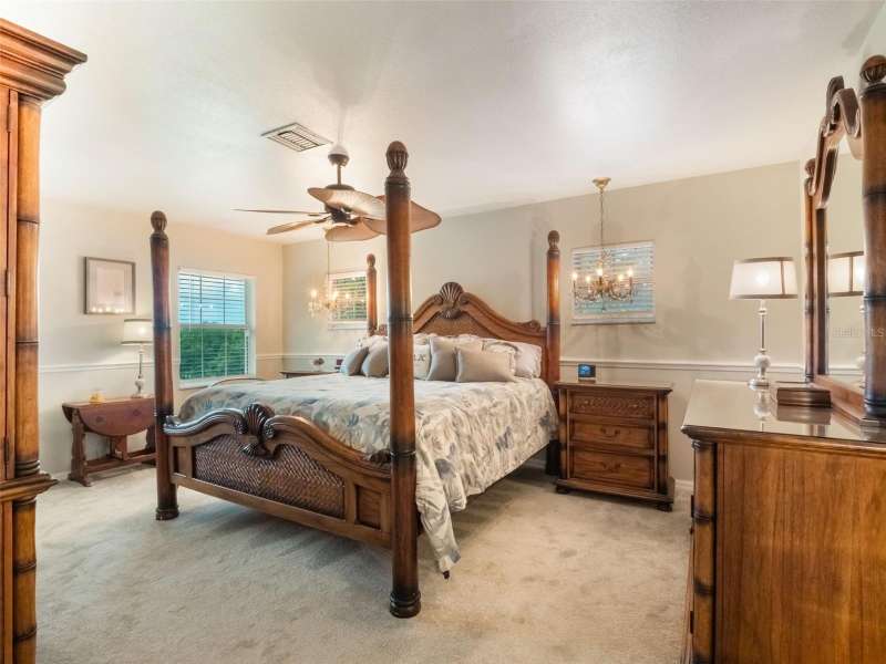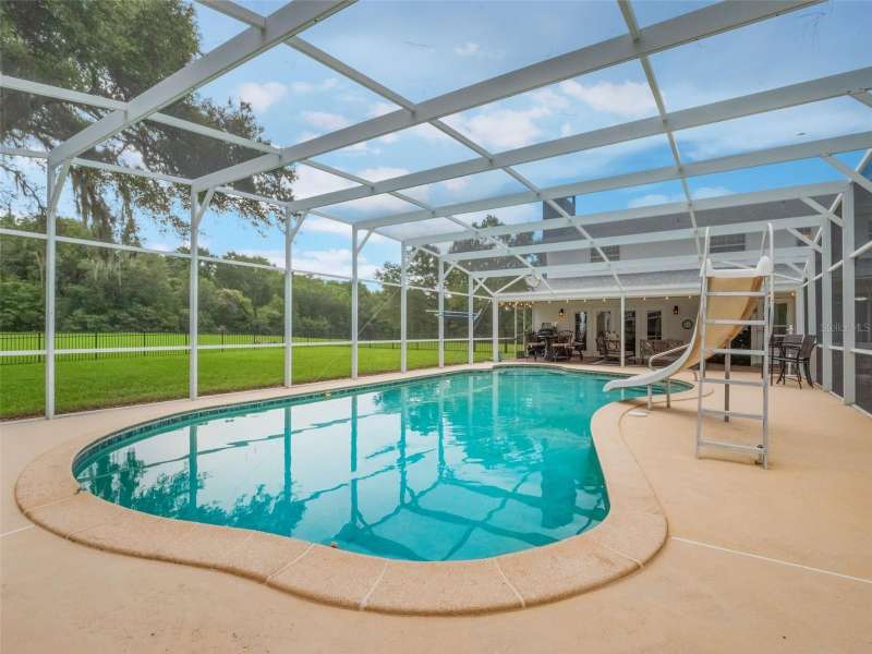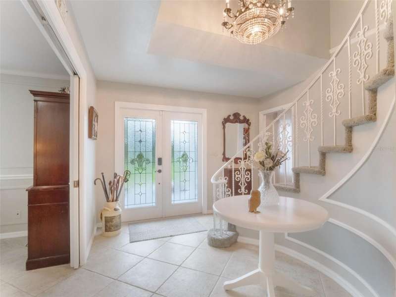 Under contract-accepting backup offers. Set atop a gently sloping hill, surrounded by nearly 17 acres of manicured, tree-canopied landscape, this stately Colonial estate invites you into a world of peace, privacy, and timeless elegance—just minutes from the charm of downtown Mount Dora and the convenience of the 429 exchange. Lovingly cared for by the same owners for over four decades, the property showcases both classic craftsmanship and thoughtful modernization. The main residence features four spacious bedrooms and three-and-a-half baths, while a separate 3-bedroom, 2-bath in-law suite offers comfort and flexibility for multigenerational living or extended guests. Step inside to discover a freshly renovated interior where natural light flows through updated windows and across gleaming tile floors. The heart of the home—a beautifully remodeled open-concept kitchen—combines sophistication with functionality, perfect for everyday living and effortless entertaining. From the cozy family room with its wood-burning fireplace and built-in wet bar to the inviting sunroom overlooking the grounds, each space invites you to slow down and savor the surroundings. Outside, a deep guinite pool with a slide and 9-foot end sits beneath a sprawling screened lanai—your own private resort. Beyond, automated irrigation spans over 3 acres of lush, irrigated greenery, making the outdoor spaces as turnkey as they are scenic. Additional highlights include a fenced dog park, dual A/C systems, updated roofing, motion-activated exterior lighting, formal living and dining rooms, and a grand front foyer that sets the tone from the moment you arrive.
