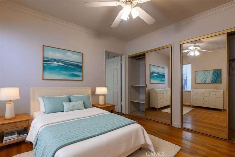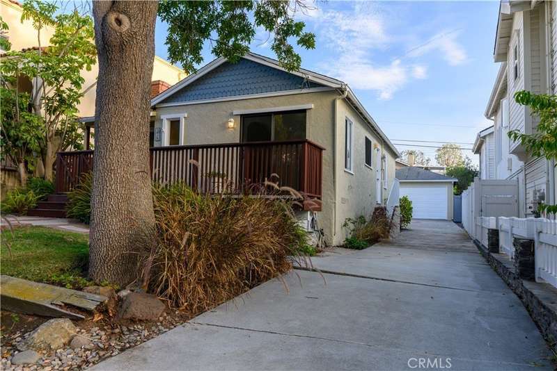 This charming 3 bedroom, 2 bath single-family home with a detached garage is located in the highly desirable Tree Section of Manhattan Beach. The home features a bright and spacious living room with hardwood floors, a cozy fireplace, and a large picture window that fills the space with natural light. A separate dining area with built-in cabinetry opens through sliding doors to a front deck overlooking the tree-lined street, while the kitchen offers ample cabinet space and connects to a dedicated laundry room with washer and dryer included. The bedrooms are generously sized with good closet space, ceiling fans, and natural light, complemented by two full bathrooms with original tiled finishes that add character. Outdoors, enjoy a private grassy backyard perfect for entertaining, relaxing, or play. A long driveway and detached two-car garage provide ample parking and storage. Situated on a peaceful street, this home offers the perfect blend of charm and convenience, just minutes from downtown Manhattan Beach, award-winning schools, boutique shopping, dining, and the beach.