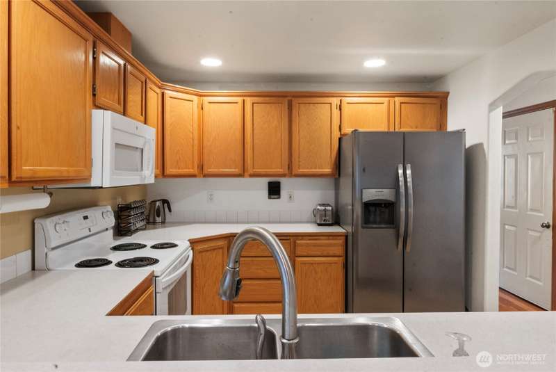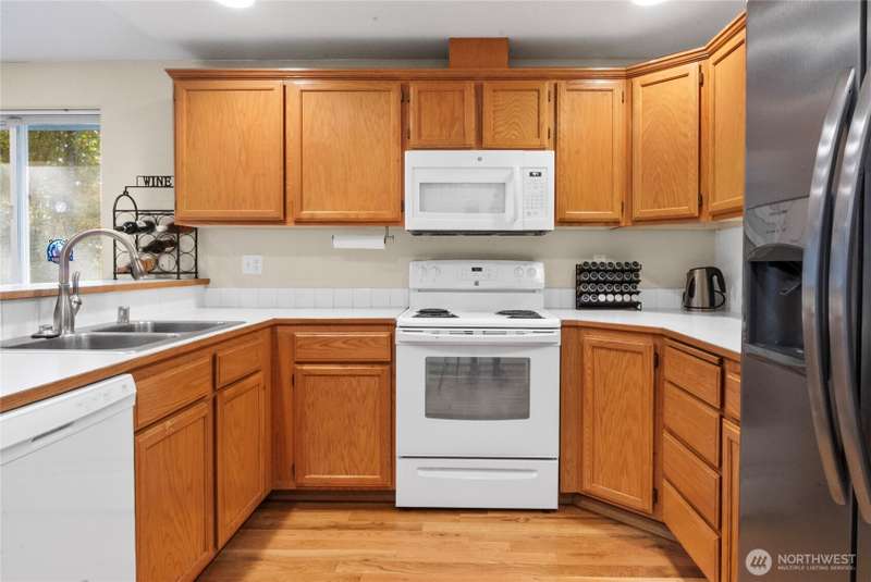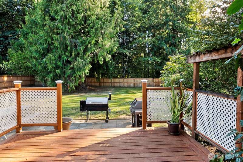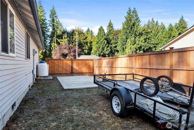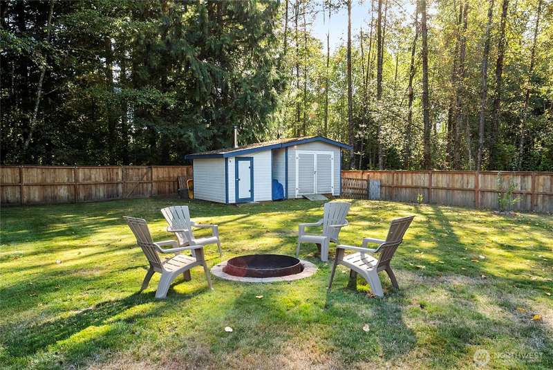 This well-maintained rambler in the sought-after Kackman Creek neighborhood is situated on a nearly half-acre lot backing to private greenspace. Enjoy a south-facing, level, and fully fenced backyard with an outdoor wood-fired sauna, RV/boat pad, dog run, and a 12x12 shed. Inside, you're greeted by beautiful white oak floors and plenty of natural light throughout. The spacious living room features vaulted ceilings, and the kitchen is perfect for everyday living. Primary suite with an attached bath and walk-in closet. With a newer roof (2023), a 2-car garage, 50 acres of walking trails, and easy access to Hwy 9 & I-5, this home offers the perfect balance of quiet living and convenience.