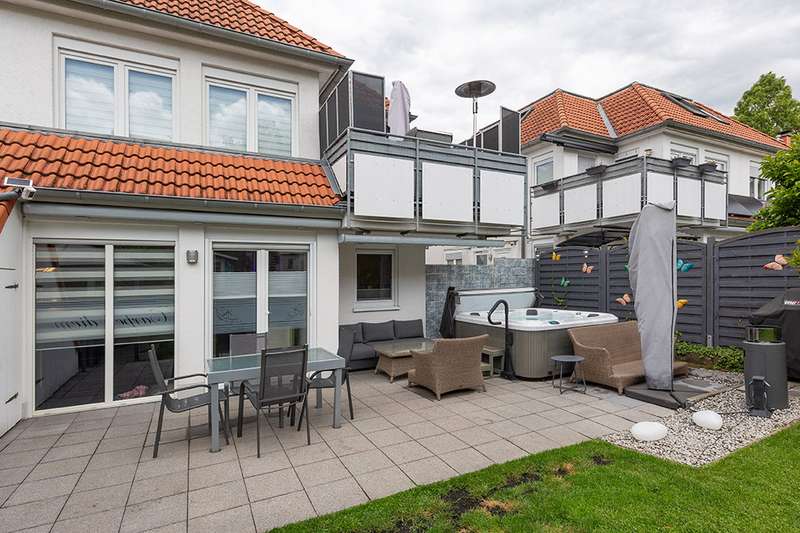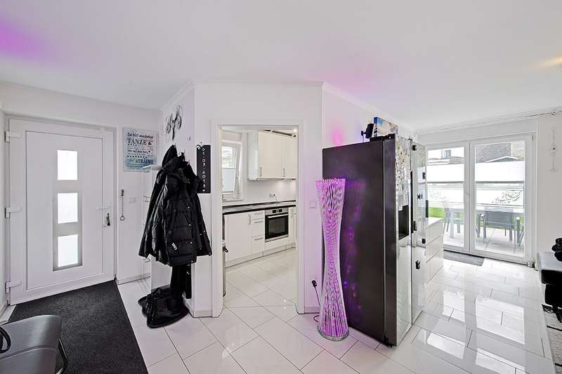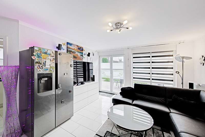 This offer is for a south-facing terrace apartment with a garden. The floor plan has a total of four rooms with two bathrooms and a guest WC, a partially covered terrace and a garage with an electric door and direct access to the apartment. A side staircase takes you to your own front door and to the main living level with access to the terrace and garden. The kitchen and the bright living/dining area face the garden, while the two bedrooms face the quiet residential street. The beautiful daylight bathroom with bathtub and shower, a storage room with washing machine connection and a separate guest WC round off the harmonious picture very comfortably. A staircase leads down to the spacious basement room with a separate dressing room and another shower room. From here you have direct access to your own garage with a further storage room and shelves for supplies, etc. If you are looking for a timelessly modern apartment in a quiet location in Schüren, call and arrange your individual viewing appointment. We look forward to seeing you.