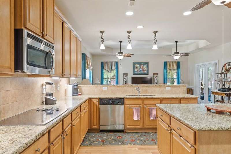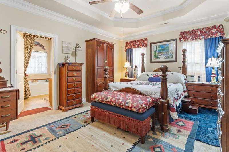 Welcome to 46 Spring Haven Lane?a 4-bedroom, 2.5-bath all-brick ranch with an upstairs bonus room, offering 3,432 square feet of well-designed living space. Situated on a quiet 3/4 acre lot, this home features a classic layout, hardwood floors, and an amazing outdoor space. Inside, you'll find a formal living room (or office), formal dining room, a spacious family room, and a huge kitchen with stainless steel appliances, double ovens, granite countertops, ample hardwood cabinetry, and a generous breakfast room. The large primary bedroom, with ensuite bathroom, is joined by 3 additional bedrooms on the main level. The versatile upstairs bonus room is perfect for an office, playroom, or guest retreat. Step outside to enjoy multiple outdoor living areas including a sprawling screened porch and an oversized patio. A pre-wired 12' x 16' shed offers additional space for tools or hobbies. Recent updates include: HVAC 2025, electric water heater 2024. Refrigerator, washer, dryer, and family room TV included. Due to condition of the floors, the seller is offering a $4500 cost concession. Live a relaxed lifestyle in Bryerstone, where you'll enjoy a community pool and easy connectivity to nearby towns and city amenities.
