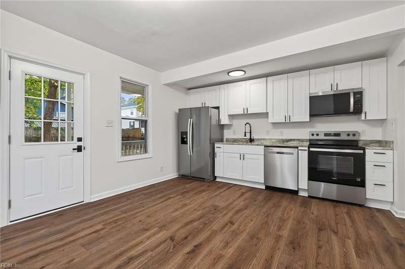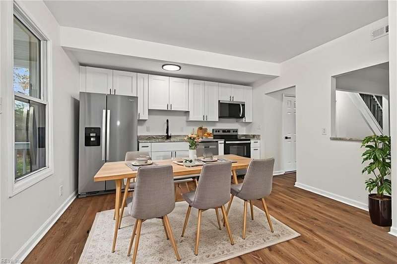 Fully remodeled Norfolk beauty with over 2000 sq ft, 4 bedrooms, and 2.5 baths! Enter the home to be welcomed by bright LVP flooring, recessed lighting, smart switches, and a modern kitchen with granite countertops and new stainless-steel appliances. Bathrooms shine with porcelain floors and tiled showers. The oversized master bedroom steals the show, featuring its own private balcony and a spacious layout you won't find anywhere else. Accent wall on the staircase adds a stylish touch. Home Also offers a double-door garage and a great backyard for relaxing or entertaining. Conveniently located near the interstate and military bases-Move-in ready and beautifully done!