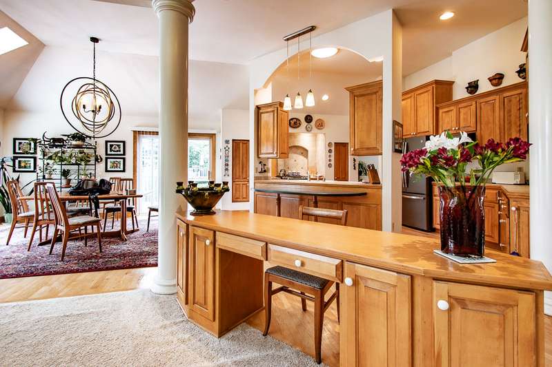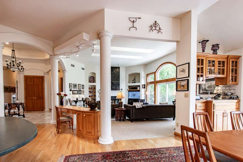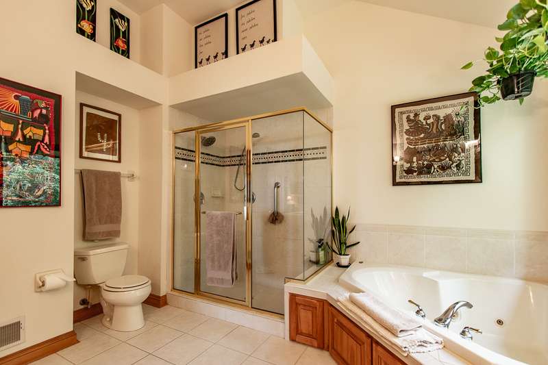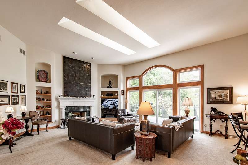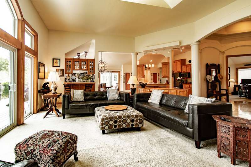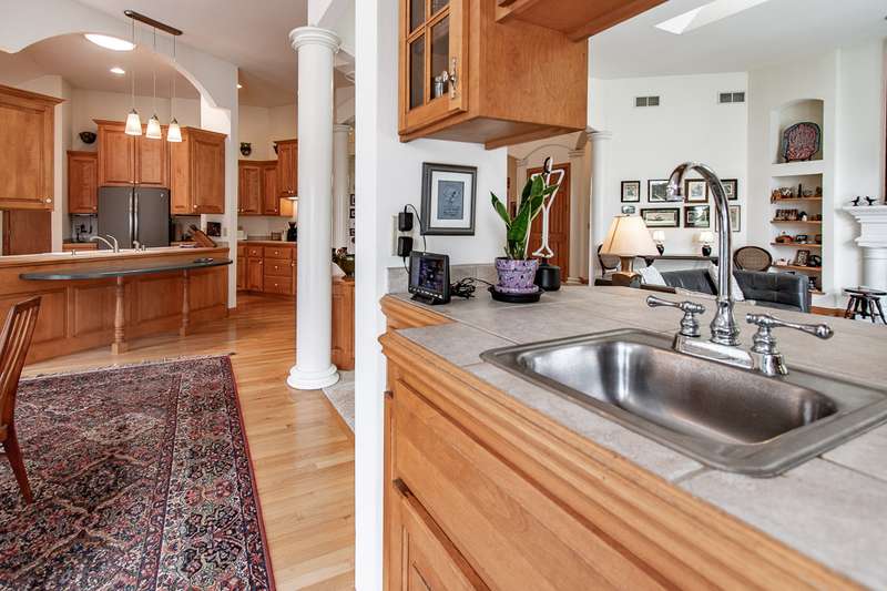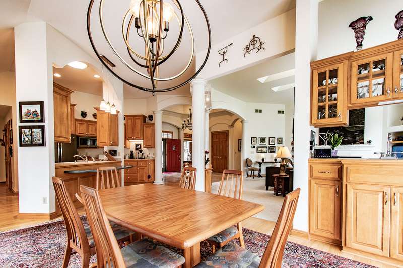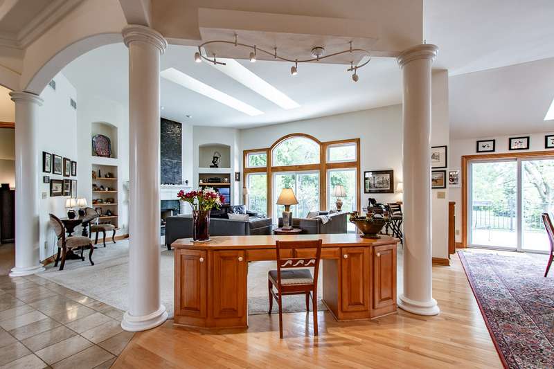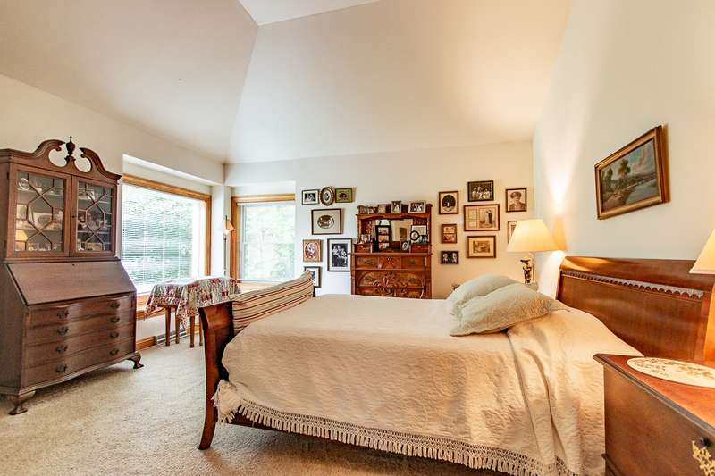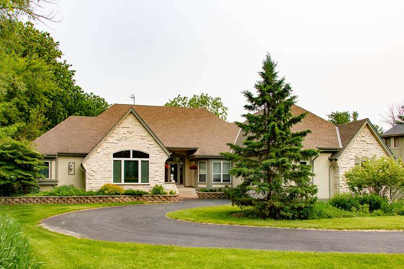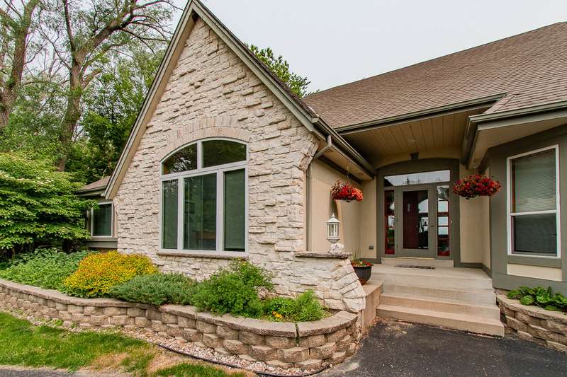 Experience this impressive and spacious lake home situated on a level 1.57-acre waterfront lot along the main body of this picturesque 2800-acre recreational lake. Located just an hour from Milwaukee and two and a half hours from Chicago, this property features bright skylights, an open layout, and remarkable attention to detail. As you enter you're greeted by an inviting grand foyer showcasing beautiful views both indoors and outdoors. The expansive living room, which features a two-sided gas fireplace shared with the master bedroom, leads out to the deck and the serene grounds. The kitchen and dining area are excellent for entertaining, complete with a small wet bar perfect for gatherings. The generous master bedroom boasts a large walk-in closet, a bath with dual sinks, a walk-in shower, and a jetted tub. Delight in the stunning ceilings and trim found throughout the home. The expansive walkout lower level is ready for your finishing touches, and the property includes a spacious drive-through garage. Enjoy reasonable taxes, along with municipal water and sewer services!