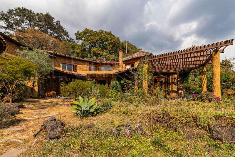 perfect for having coffee in the morning. Covered terrace outside the dining room. Terrace on the second floor for sunbathing and moon watching. An area behind the house, ideal for reading and having afternoon tea. Ecovillage Huehuecoyotl is a community located on an area of 20,797 m2 in which 14 residences were built. Due to its proximity to the mountains, its forest surroundings and access to almost 15,000 m2 of common areas in which gardens, a community kitchen, a work room and a garden area for events have been implemented. Transfer of rights.