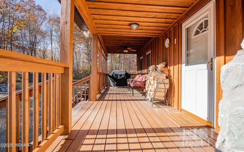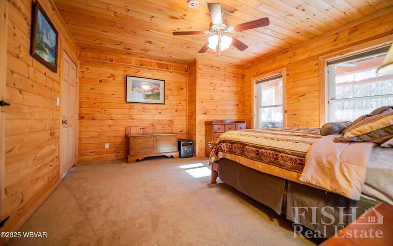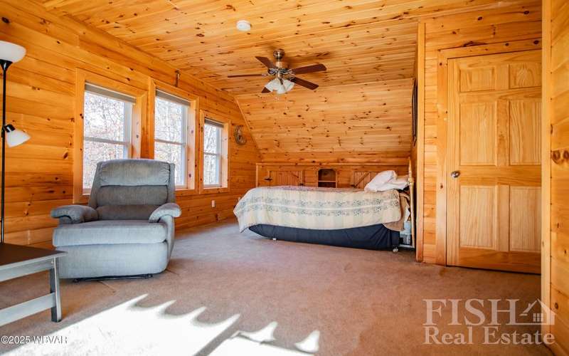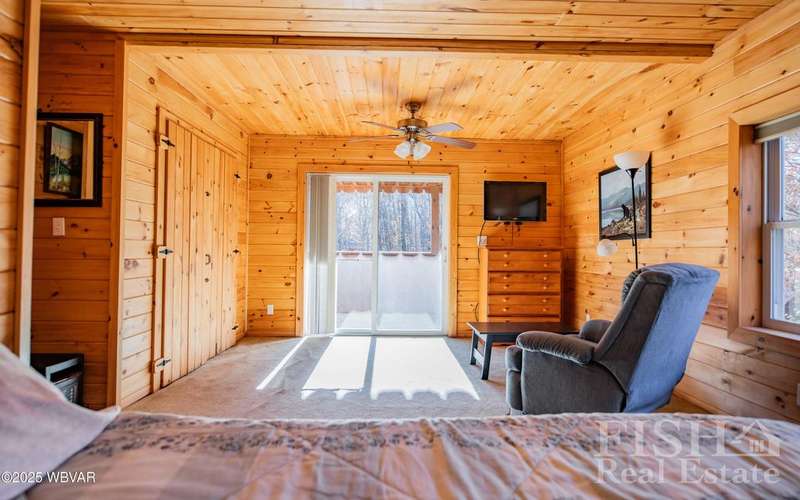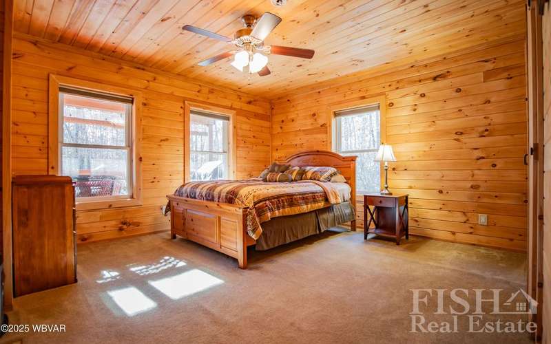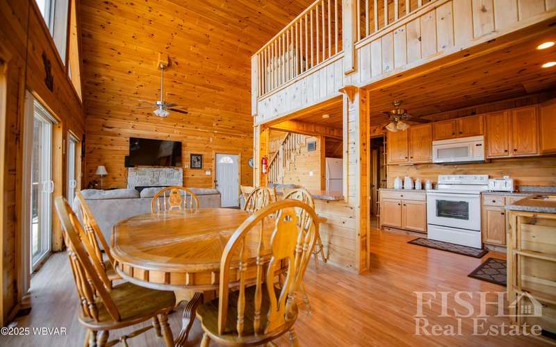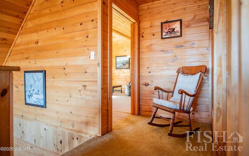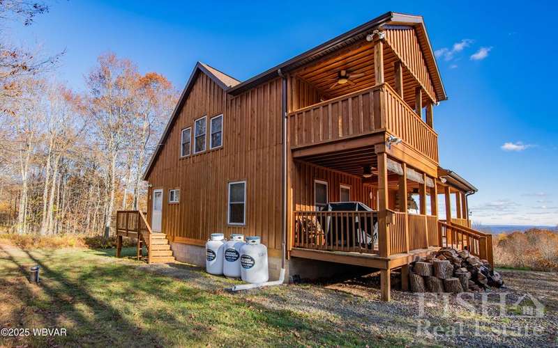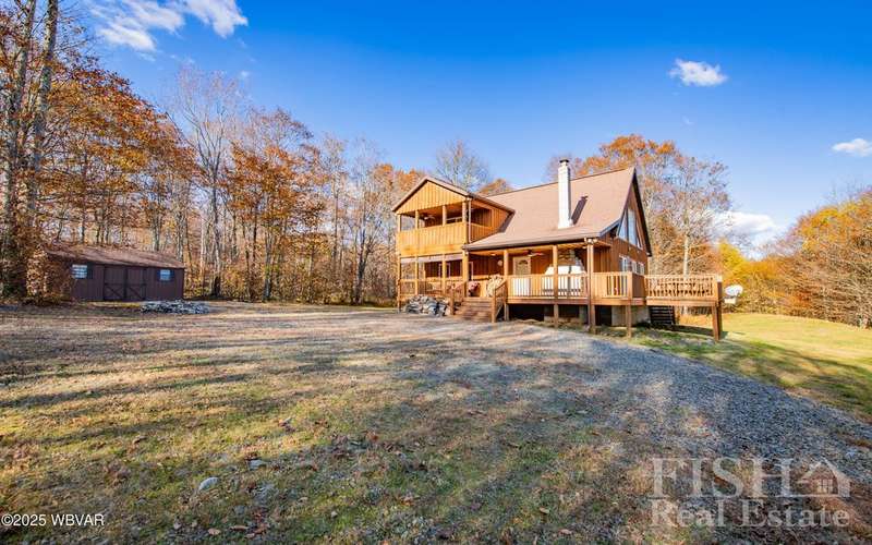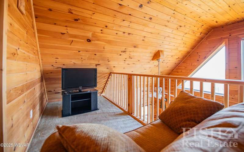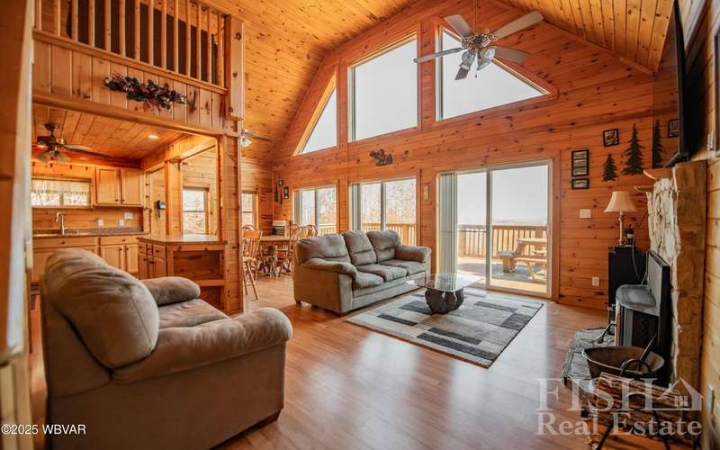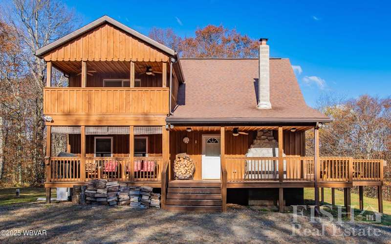 Don't miss out on this beautiful 2BR/2BA cabin situated on 2.721 acres in the FoxGate Subdivision outside Shunk. The cabin highlights an open concept with tongue and groove white pine walls and ceiling throughout. The living room with wood stove insert and dining room share a cathedral ceiling and three sliders leading on to a spacious deck with stunning views. The well-appointed kitchen features a bar with seating. Rounding out the first floor is a nice size bedroom, 3/4 bath and laundry-mudroom. Upstairs is the large primary bedroom with sitting area and covered balcony with two ceiling fans where you can enjoy your coffee while taking in the amazing views, a full bath and loft area. This hunter's paradise with trail access to 24,000+ acres of state game lands can be yours for $389,900. FoxGate has a spring-fed pond and various trails for hiking/four-wheeling throughout the 280 acre development. Don't miss out on this hunter's paradise with trail access to State Game Land #012 offering 24,000+ acres to hunt and fish Schrader Creek (native trout stream). If that's not enough, get your name on the waiting list to be a member of the adjoining 900-acre hunting club.