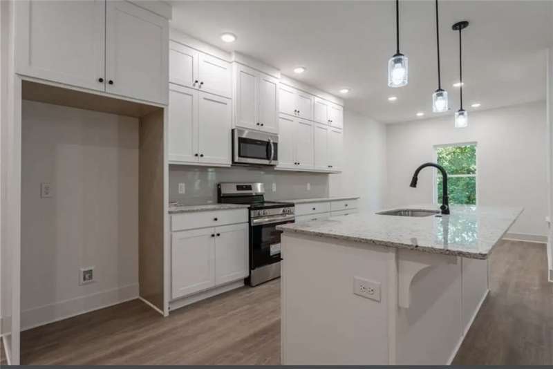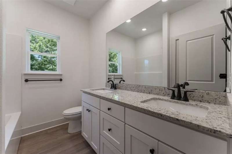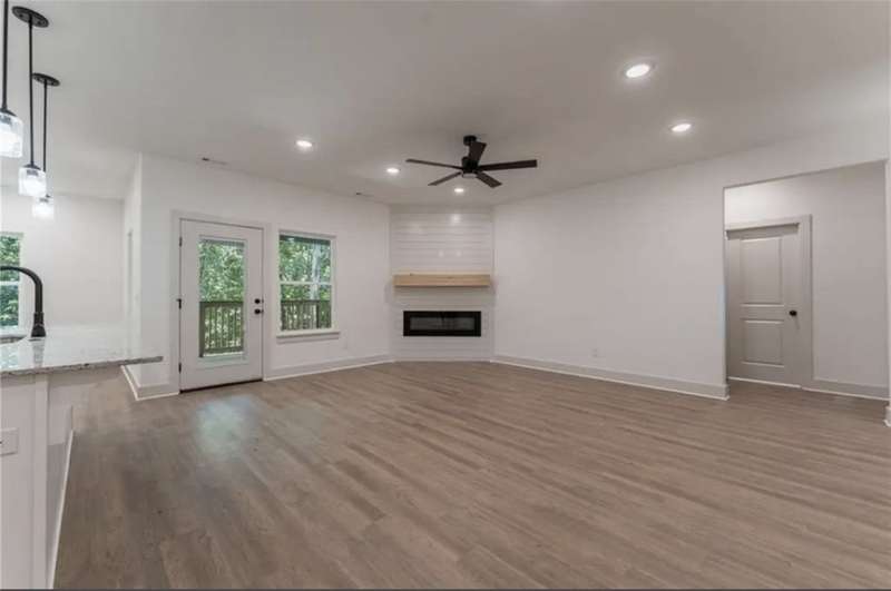Available 11/1!! Brand new 4 bedroom, two bath, two car garage. Open Kitchen and living room, with fireplace. Covered porch, lament wood floors throughout entire home. Large walk in pantry with stainless steel appliances. Granite countertops in kitchen and bathrooms. Private yard backing up to woods. Great location! Less than a mile to Metfield Park. Bentonville School District.