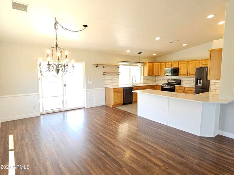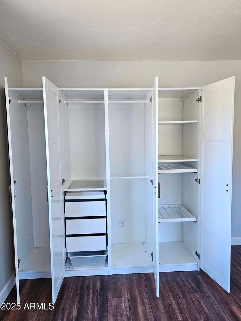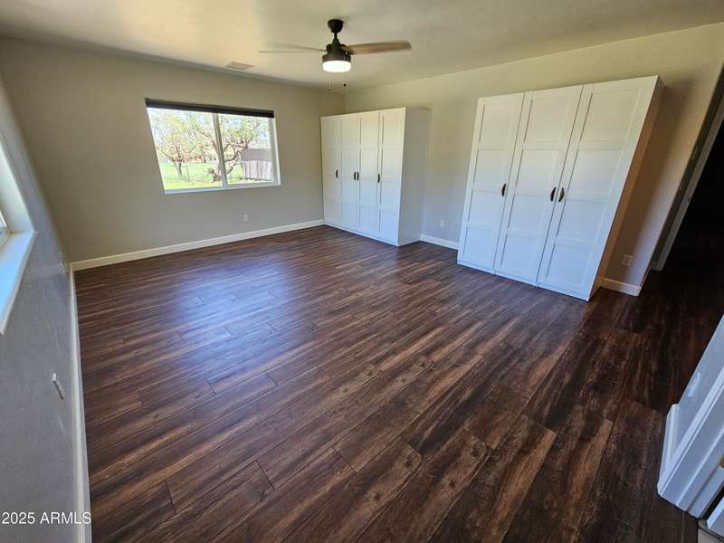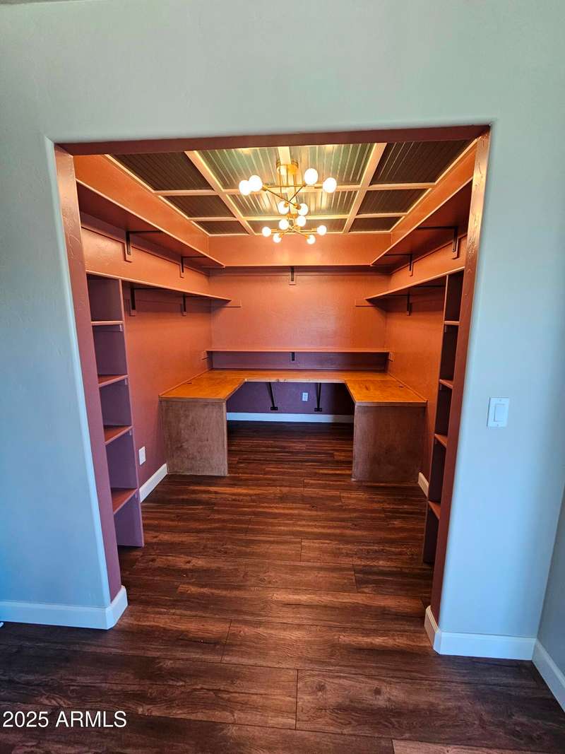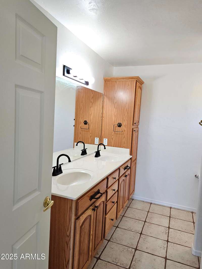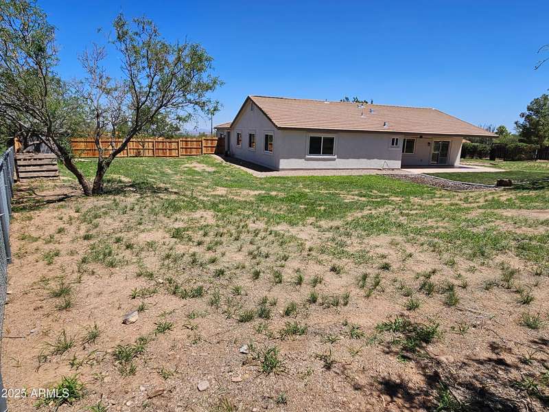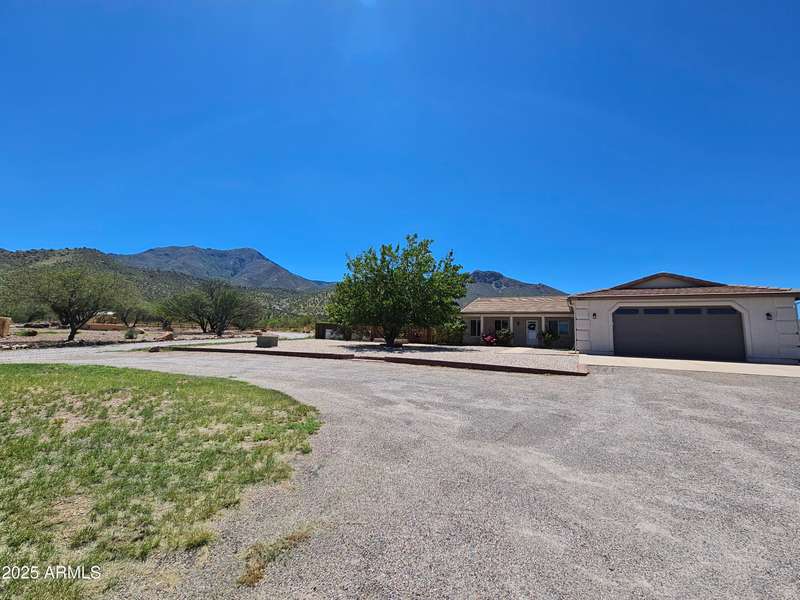 A move-in ready 3 bedroom 2 bath home. The bedrooms and den are extra-large and welcoming. The primary bedroom closet was converted to an office with built-in desk and shelves. Additional closets were installed offering ample closet and dresser/storage space. The laundry room has lots of storage, a deep sink, and a built-in drying rack. Enjoy an Arizona sunset over the Huachuca Mountains from your west facing covered patio. 1.1 acres offers you a garden plot, a fire pit area, a storage shed, and room for a pool. A 2 1/2 car extended garage with built-in storage cabinets and a roll up door on the side. Cement tile roof. Fresh paint inside and outside, 2025. Kitchen updated with quartz countertops and new appliances in 2018. New flooring throughout 2018.