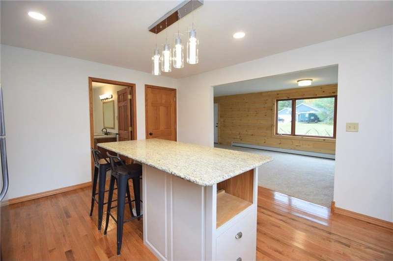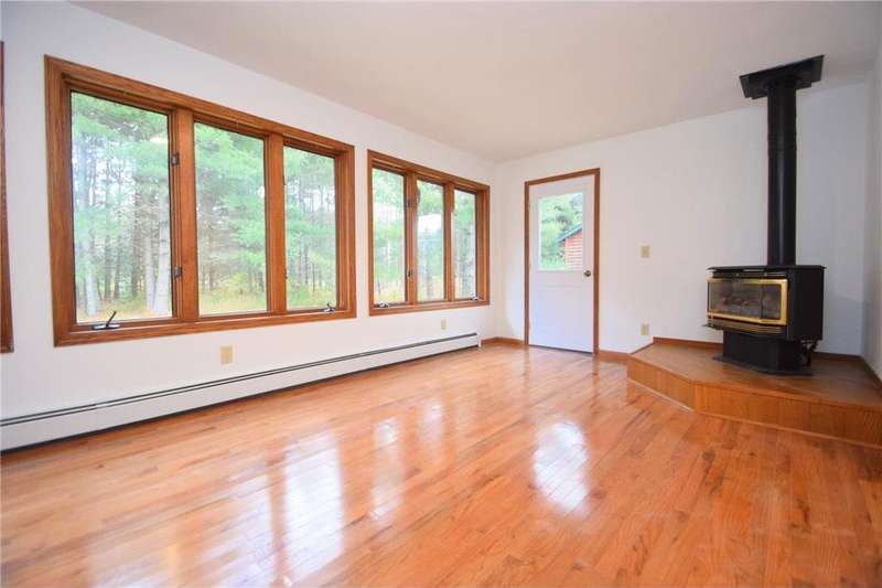 Stunning completely renovated 3+ BR, 2 BA home awaits with an off-the-charts new gourmet kitchen! You'll love the soft white cabinets, contrasting brushed nickel drawer pulls, Viking SS appliances, center island w/seating, granite counters, tile backsplash, wood floors: a cook and entertainer's dream! Spacious, functional home with main floor master bedroom, main floor Washer/Dryer hookups, family/dining room with free standing frplc. Large living room has hand-hewn rustic pine wall w/chinking to add flair and coziness! Top-notch mechanicals, full basement + crawl, egress window for future 4th BR, hot water in floor, state of the art boiler, all new plumbing, electrical, painted exterior, some newer windows & entry doors, new ceramic bath & slate entry, & new carpeting. Make this efficient, lovingly renovated home yours in this new development just outside of Webster complete with city water & sewer! Close to schools, shopping, Gandy Dancer Trail, ATV trails & so much more!