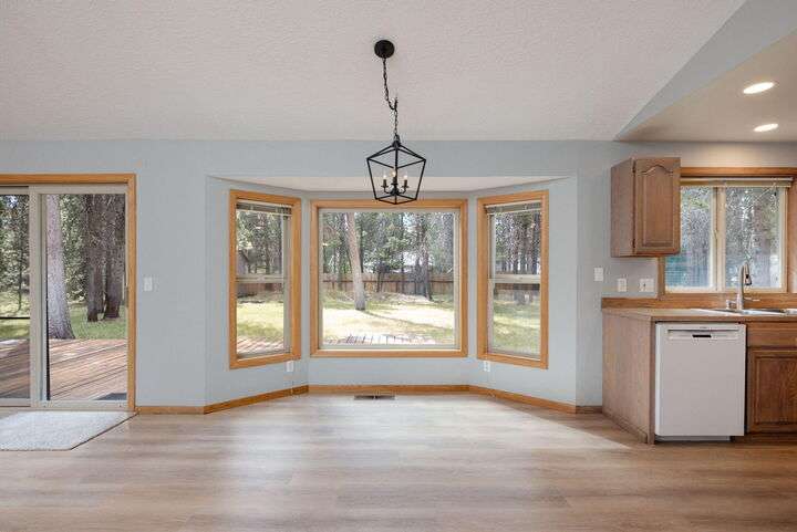 Beautifully updated single-level home on a spacious 0.47-acre lot in the desirable Sunriver area. This turn-key property has undergone a full refresh, including a new roof, fresh interior and exterior paint, and updated flooring with LVP and Stainmaster carpet. Additional upgrades include a 50-gallon water heater, digital thermostat, interior light fixtures, recessed lighting in the kitchen, brushed nickel hardware throughout, and new exterior lighting. The home also has AC. Located in a neighborhood with private river access, plus community water and sewer. Enjoy easy access to rivers, lakes, trails, and endless outdoor activities. The Sunriver Resort is just minutes away, offering dining, golf, and recreation year-round.