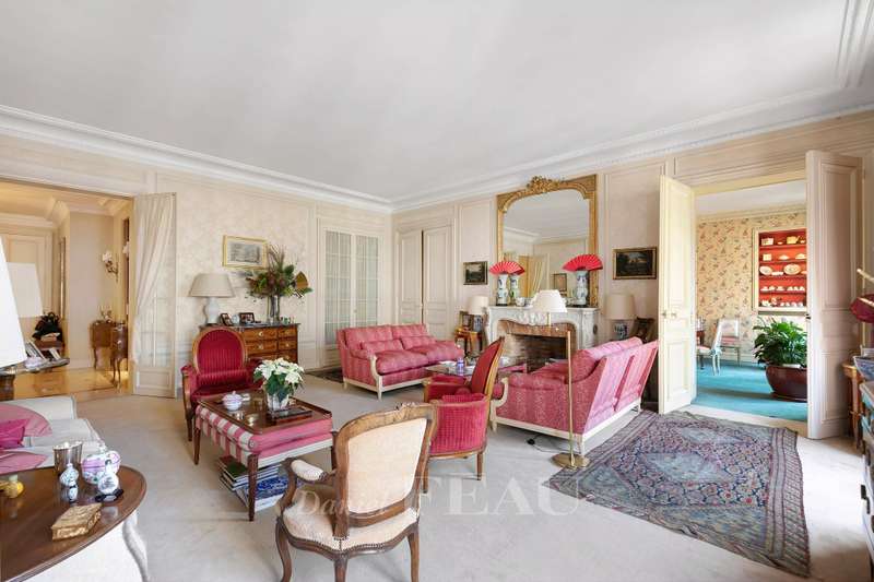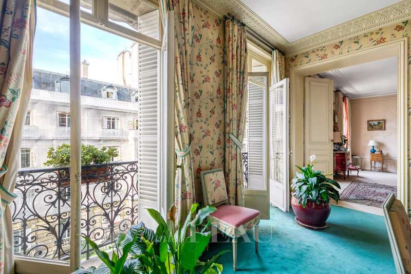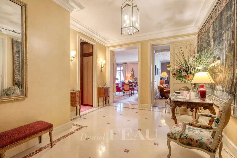 Sole Agent. Rue Rembrandt, a stone’s throw from leafy Parc Monceau and the schools. This sunny west-facing apartment is on the 3rd floor of a luxurious refaced late 19th century building. 234 sqm of living space includes a living/reception room, a dining room, a spacious kitchen, five bedrooms, a dressing room, a bathroom, two shower rooms with wc, a utility room and a wc. With a cellar, a 16.50 sqm studio apartment and a courtyard garage. Some renovation is required to exploit the full potential.