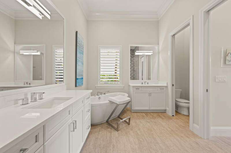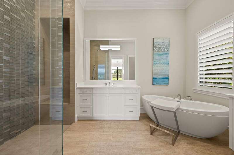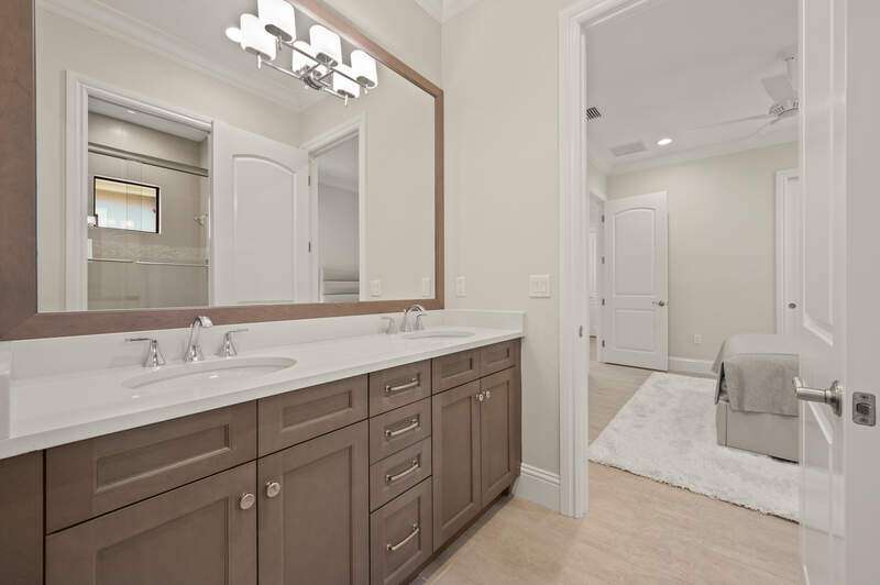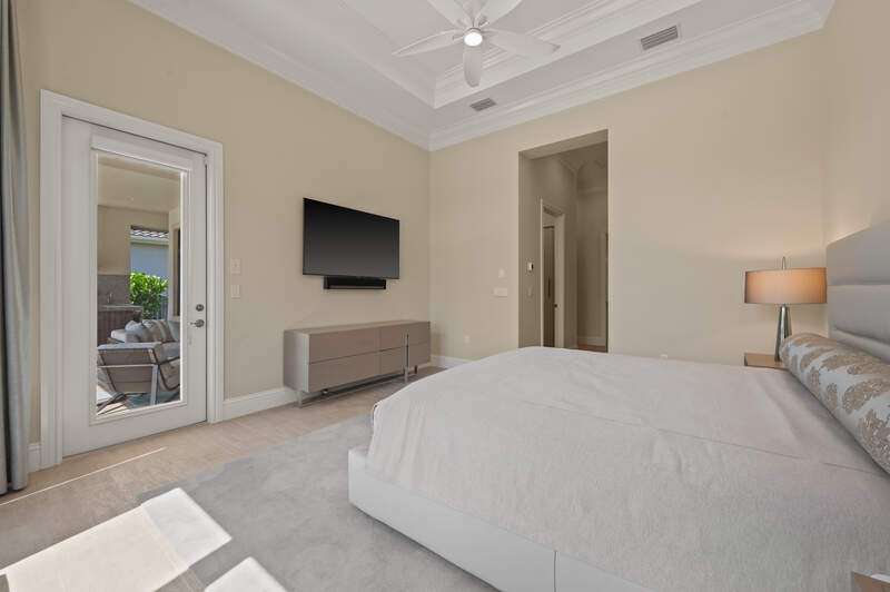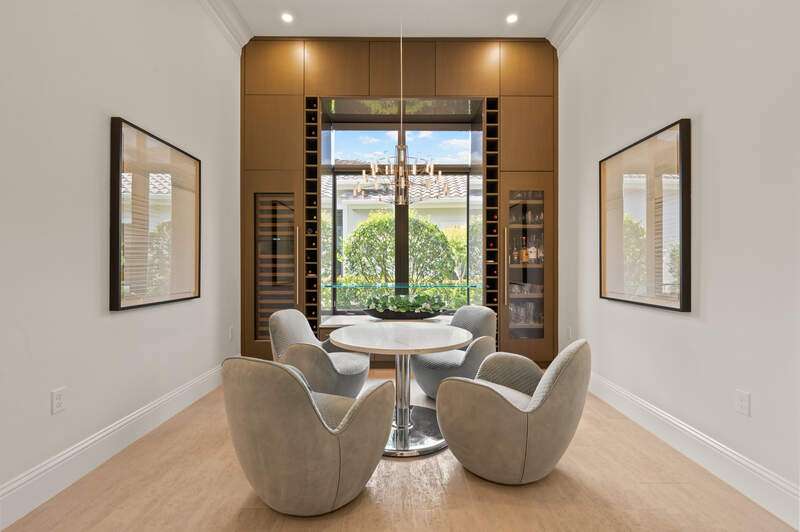 IMMEDIATE GOLF AVAILABLE - SKIP THE WAITLIST! Experience the timeless merging of chic elegance and clean lines all within the existing open spaces of this updated villa. Reimagined by Jorge Castillo Interiors/Miami, every detail has been meticulously curated to create a refined, tranquil space that's both sophisticated and inviting. New floors were added to match the main area flooring so that each room merges effortlessly. The sleek, tailored millwork of the custom built-ins thoughtfully integrated throughout the home offers both aesthetic appeal and practical storage. The split floor plan features an open great room with gathering and dining areas as well as a gourmet kitchen boasting a large new island plus stainless steel appliances. The high design continues with a go-to wine room/game room anchored by built-in wine coolers. The primary suite has been redesigned with two re-styled walk-in closets, new shower tile and shower glass, new faucets and an enviable view. Many new designer light fixtures and fans are featured throughout as well as a renovated, air-conditioned 3-car garage with new epoxy flooring and insulated ceiling and doors. Take it outside for amazing sunset views from an expansive lanai that is the envy of the area. All new retractable screens, new tile surrounds for fireplace and grill backsplash, new cabinetry and waterfall countertops with a separate new counter for al fresco dining. Surrounded by new landscaping and open golf course views, there is no need to go inside!