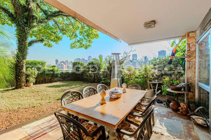 Casa ampla, extremamente ventilada e iluminada. Terreno alto. Vista impecável para o por do sol. Silenciosa e bem conservada. Planta original. Seis vagas de garagem, quintal com jardim e sala para cinco ambientes. Sala de jantar, escritório e academia.