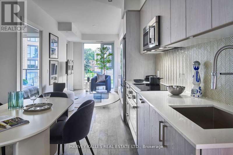 Welcome to 293 The Kingsway! Beautiful architecture and landscaping throughout. New luxury suites with an array of amazing amenities and services. The largest private fitness studio in the area. Featuring an expansive rooftop terrace with cozy lounges. Including top-tier concierge service, a pet-spa and more. 293 The Kingsway is a gateway to sophisticated living. Brand new and never lived in. Suite 305 offers an open concept layout of 715 sq. ft., with a walk-out to Balcony from LR/DR & Kitchen. Separate Den. An opportunity to live in one of Toronto's most prestigious neighbourhoods - The Kingsway. A rare jewel of a residential community with tree-lined avenues and lush parks. Walk to shops at Humbertown Shopping Centre, sip a coffee with a friend at a nearby cafe. Bike along the Humber River. Shop for freshly baked bread at a local artisan bakery or enjoy your day at a local country club. This is a sought-after neighbourhood designed for those who like to live well. (id:6370)
