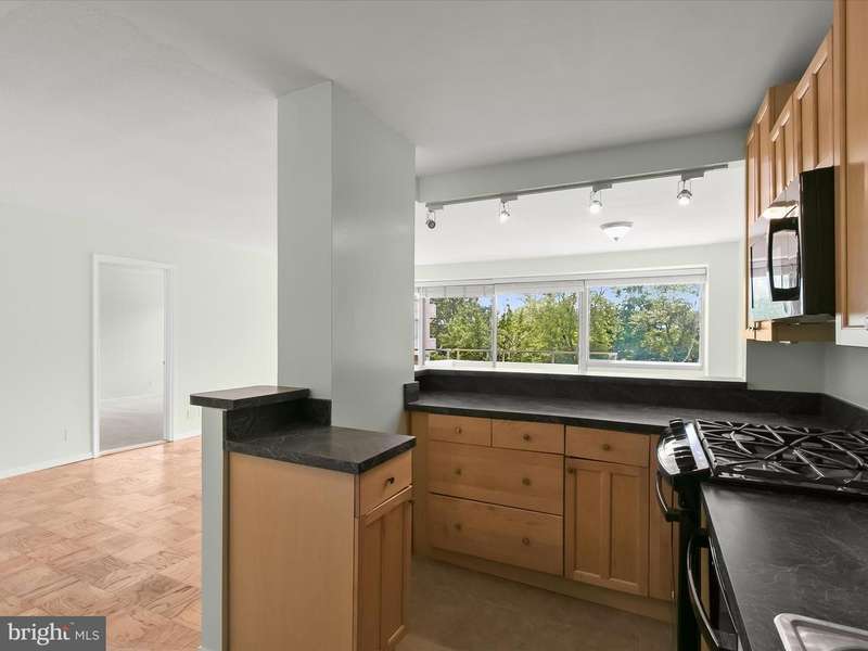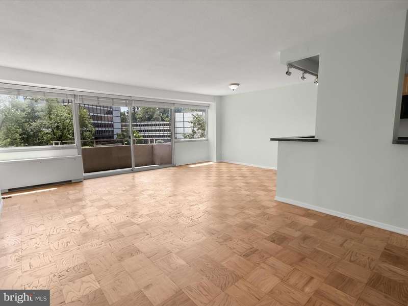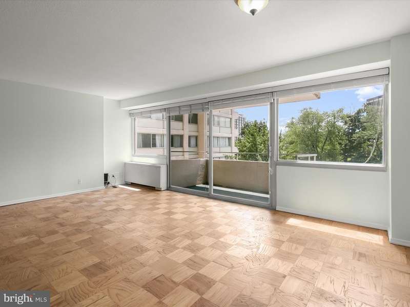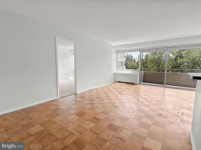 Welcome to the vibrant Chevy Chase lifestyle in this spacious 1-bedroom, 1-bath condo located in the highly sought-after Willoughby of Chevy Chase. Hard to find private balcony unit which also includes 1 reserved Garage parking space. Ever popular private balcony unit for relaxing and entertaining. Home has been freshly painted and along with brand new carpet ready to move in. Nestled amid manicured grounds featuring a striking metal garden sculpture and a tiered water feature, this residence offers a peaceful retreat in the heart of a dynamic neighborhood. The stylish, attended lobby sets the tone as you head to the elevators and up to your unit. Inside, the foyer opens into an inviting living and dining area adorned with classic parquet hardwood floors. Sliding glass doors lead to your private balcony, where you can take in sweeping city views-an ideal spot for your morning coffee or evening unwind. The kitchen, with its complementary appliances, pantry, and breakfast bar, offers a functional layout with a line of sight to the living area and city beyond. The sunlit bedroom features plush carpeting, a walk-in closet, and convenient access to the dual-entry full bath, creating a restful and private space to recharge. Enjoy a host of on-site amenities, including a rooftop pool, fitness center, library, party room, convenience store, and 24-hour concierge. The Willoughby also features common laundry rooms, elevators, and tranquil green spaces. Located just moments from the Friendship Heights Metro (Red Line), with easy access to major commuter routes including Wisconsin Ave, Connecticut Ave, the Capital Beltway, and the George Washington Parkway, this location is a commuter's dream. Indulge in world-class shopping and dining at Chevy Chase Pavilion, Mazza Gallerie, and nearby high-end retailers such as Neiman Marcus, Saks Fifth Avenue, and Whole Foods. With top restaurants and corporate hubs like the Geico Insurance Agency and the Ritz-Carlton nearby, this is urban convenience at its best. Live in comfort and style in one of Chevy Chase's most desirable addresses. Note: Select interior photos have been virtually staged.
