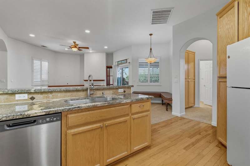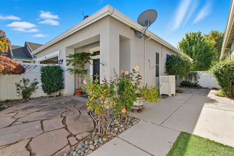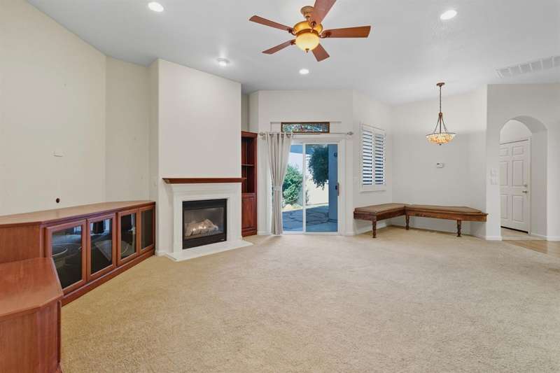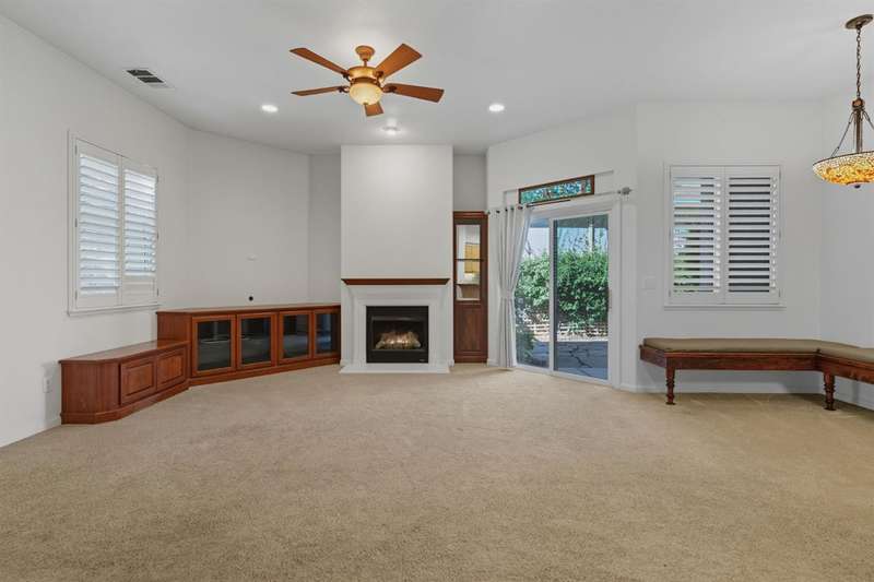 Here's your opportunity to live in Ripon's desirable 55+ retirement community at beautiful Chesapeake Landing. This home features great room with gas fireplace, custom built in shelves/cabinets and media cabinet, ceiling fans, Tiffany style light fixtures, plantation shutters throughout, water softening system, whole house fan, sun screens and an abundance of garage cabinets. Kitchen is open to great room, has granite slab counters, under cabinet lighting and plenty of storage space. Generous master suite has double sinks, large shower, walk in closet and convenient laundry area with cabinets. Quaint private yard with custom stone paver's, decorative landscaping, access to front and rear of home and enclosed with vinyl fencing. Enjoy all the amenities this community offers - pool, spa, club house with kitchen and an exercise room/gym. Great location within walking distance of restaurants, shopping, and Mistlin Park.