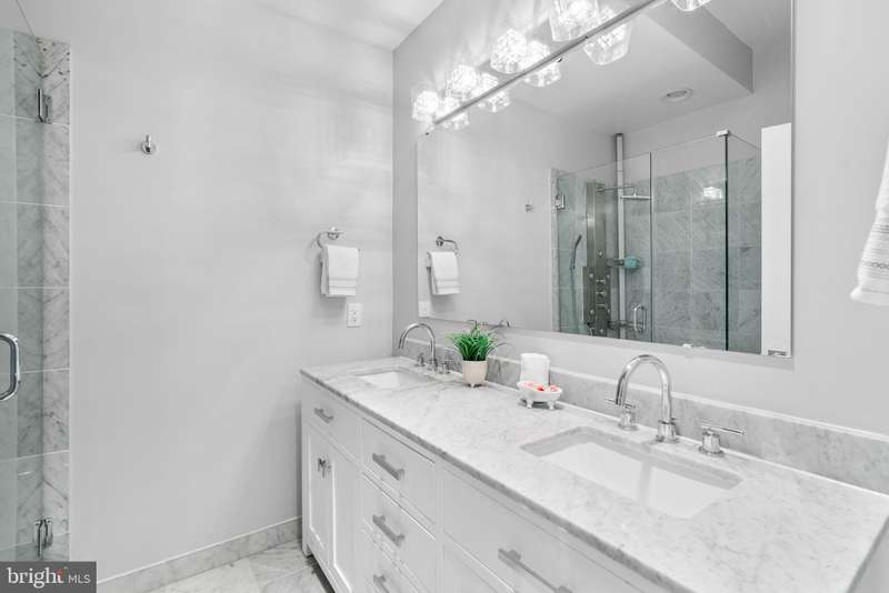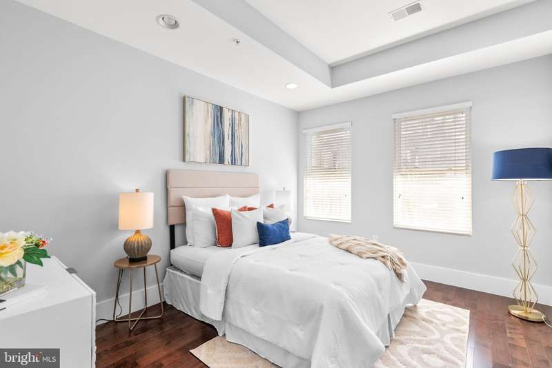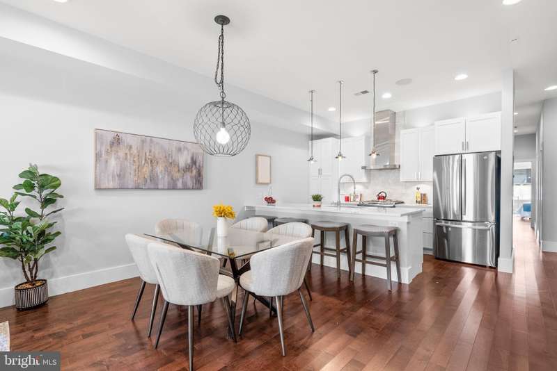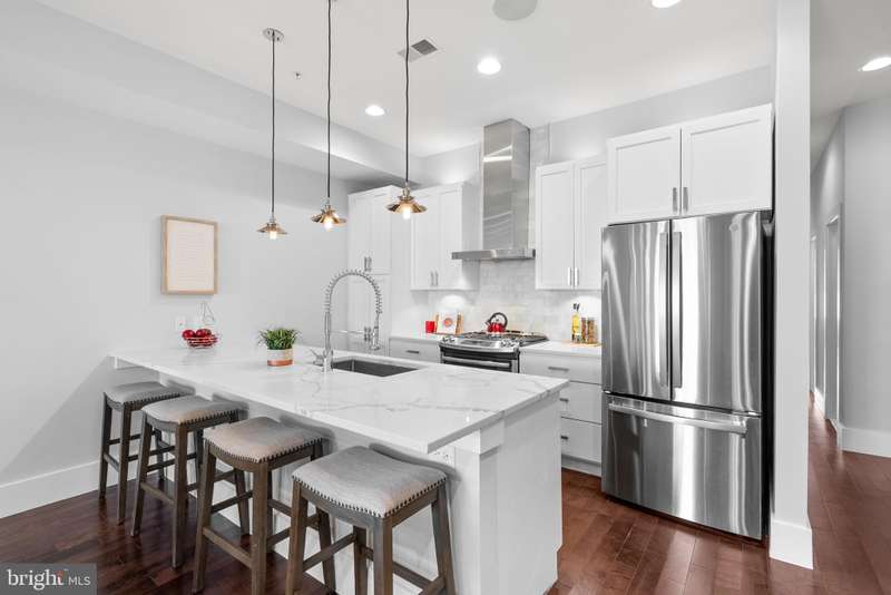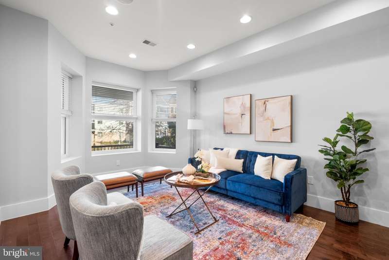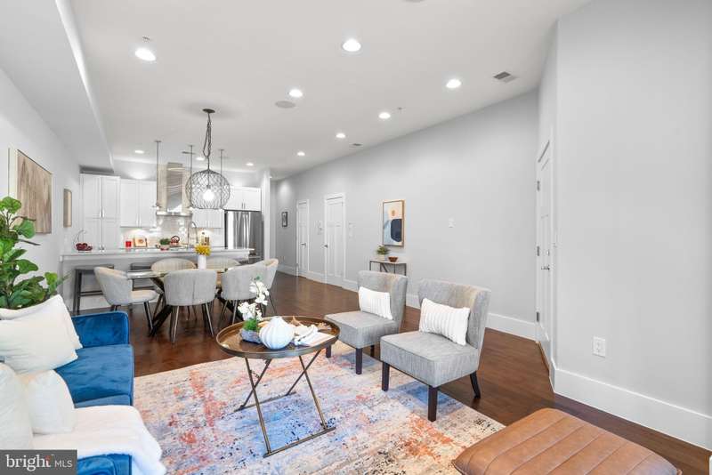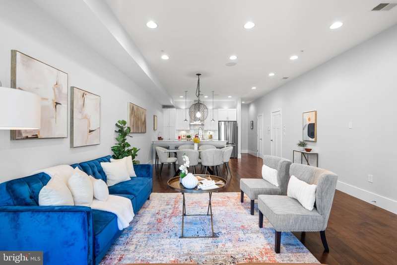 Experience luxury living in this stunning 2BR + Den, 2.5BA condo located in a boutique building in the heart of Columbia Heights. This home showcases breathtaking finishes throughout, including hardwood floors and recessed lighting with ceiling speakers. The sun-filled Living Room features large windows, while the spacious Dining Room is highlighted by a gorgeous chandelier. The open-concept Kitchen is a chef's dream with white shaker 42" cabinets, soft-closing drawers, quartz counters, a large stainless steel undermount sink, breakfast bar with pendant lighting, wine refrigerator, custom backsplash, and gas stove. The Primary Suite offers recessed lighting, a large walk-in closet with custom organizers, and a spa-inspired bath with a double marble vanity, walk-in shower with glass enclosure, body jets, and rainfall shower. The second Bedroom includes recessed lighting, a walk-in closet, and access to a private rear patio. The Den features a closet with built-in cabinetry-perfect for a nursery, home office or flexible guest space. A dedicated Laundry Room provides a full-size stackable washer and dryer along with added shelving for convenience. Additional highlights include a hall bath with marble vanity, a large walk-in storage closet with organizers, and an enormous closet on the lower level for extra storage. With thoughtful storage solutions at every turn, there is truly no shortage of storage in this home. Enjoy low condo fees, a lovely front porch, and an unbeatable location close to shops, restaurants, and public transportation.
