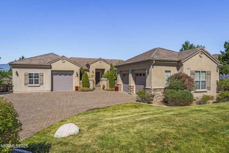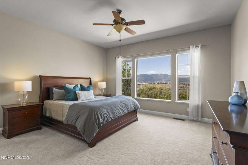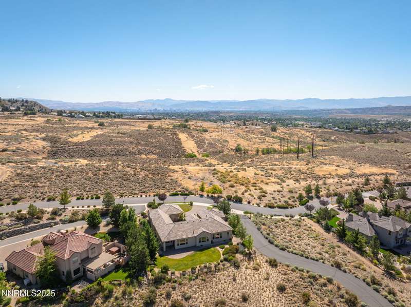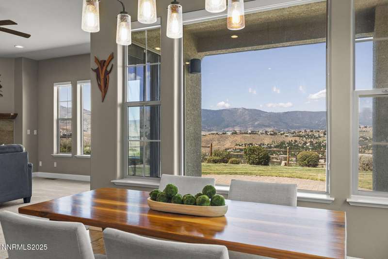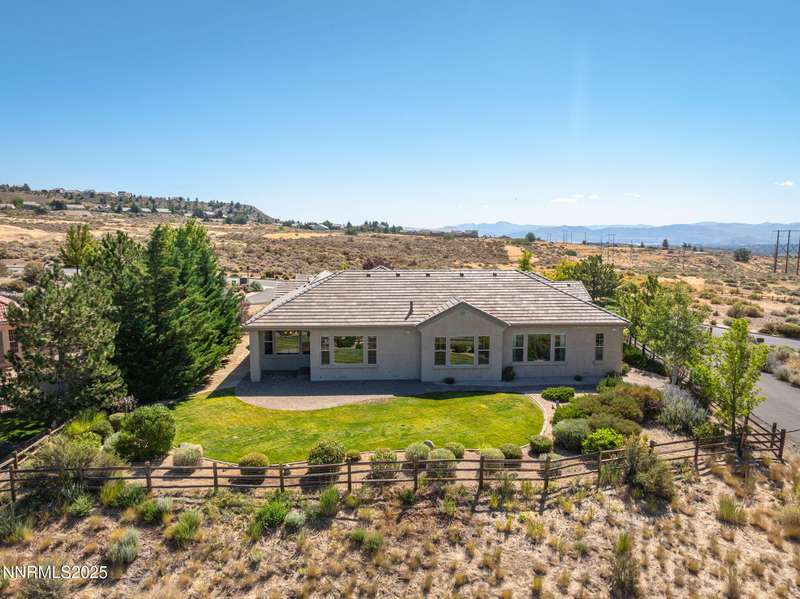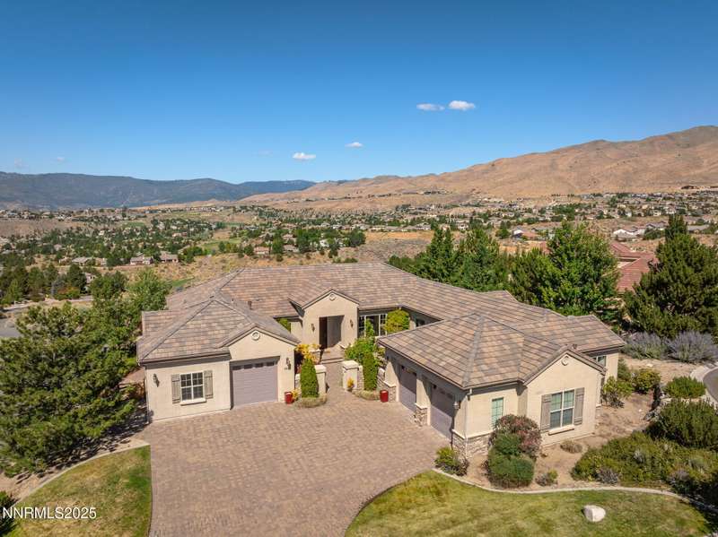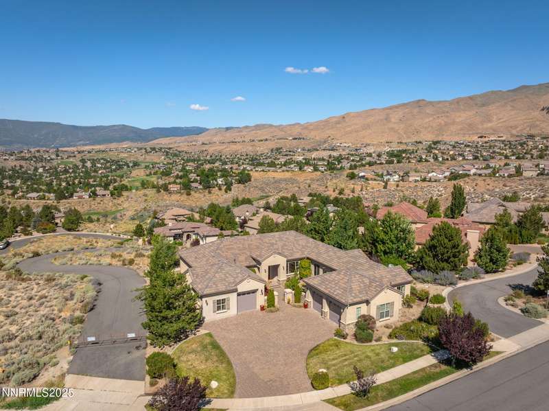 Breathtaking 360° Views of the surrounding mountains, valley, golf course, high desert, and mature trees frame this exquisite single-level estate located in the prestigious Somersett community. Featuring 4 spacious ensuite bedrooms, 4.5 bathrooms, an office, and 3,759 sq ft of thoughtfully designed living space on just over half an acre, this home perfectly blends luxury, functionality, and indoor-outdoor living. Enter through a private gated courtyard framed by lush, mature landscaping. Inside, you're welcomed by soaring ceilings, wide hallways, and an abundance of natural light. The expansive great room showcases custom built-ins, a gas fireplace, built-in speakers, and a ceiling fan, creating a warm and inviting space for both everyday living and entertaining. The chef's kitchen is beautifully appointed with a double oven, gas range, oversized island, walk-in pantry, and extensive cabinetry—all opening seamlessly to the great room. A formal dining room offers the perfect setting for elegant gatherings, while the separate living room provides flexible space for a game room, media lounge, or second living area.The oversized primary suite is a true retreat with a spa-like bathroom featuring a jetted tub, separate shower, dual sinks, and a large walk-in closet. Second bedroom with ensuite bathroom has a seperate entrance and could be used as an office , bedroom, or a workout room. Additional bedrooms are thoughtfully situated on the opposite wing, each with its own ensuite bath, ensuring privacy for all. Enjoy no rear or side neighbor, a three-car garage (2-car plus separate 1-car), tile roof, stucco exterior, and mature landscaping in both the front and backyard. Step outside to miles of scenic hiking and walking trails, with a bike park just moments away—an outdoor enthusiast's paradise. All of this, just minutes from shopping, dining, golf, and entertainment. Don't miss this perfect opportunity to own your dream home!