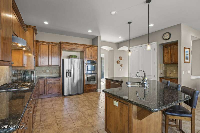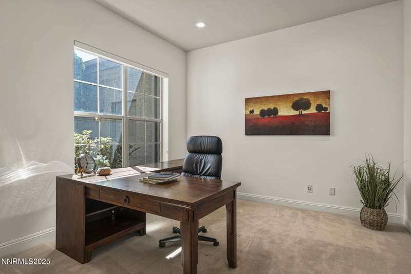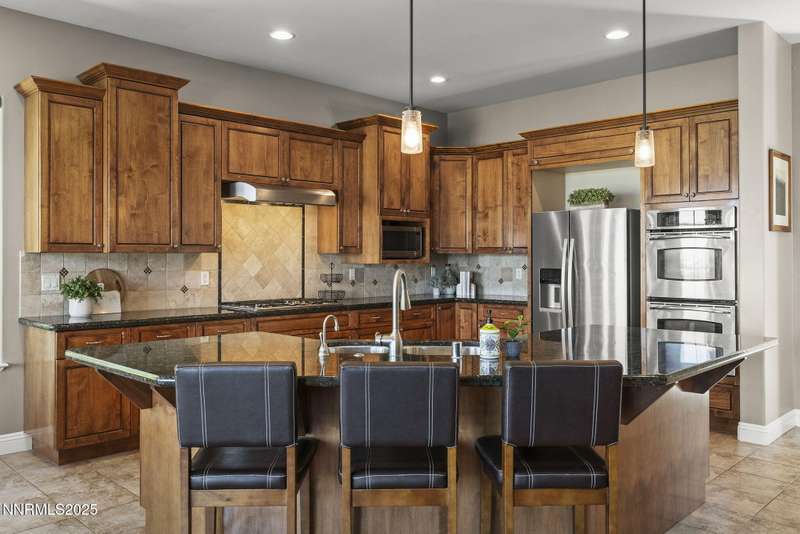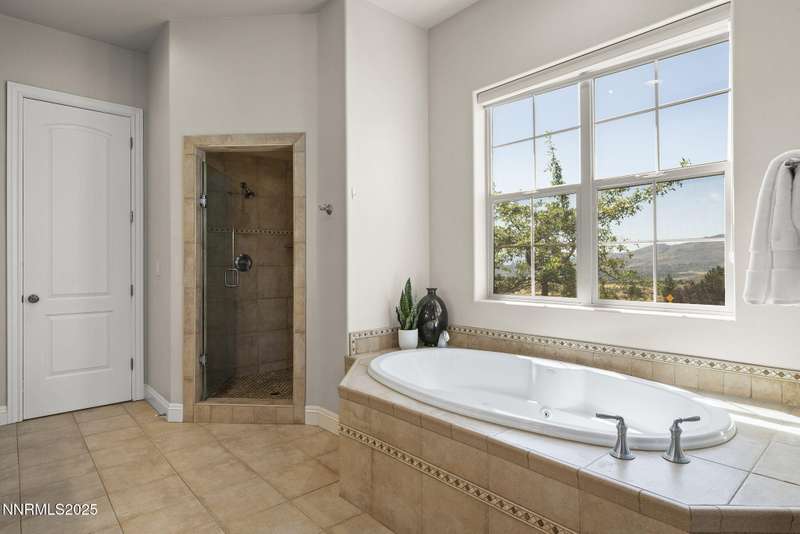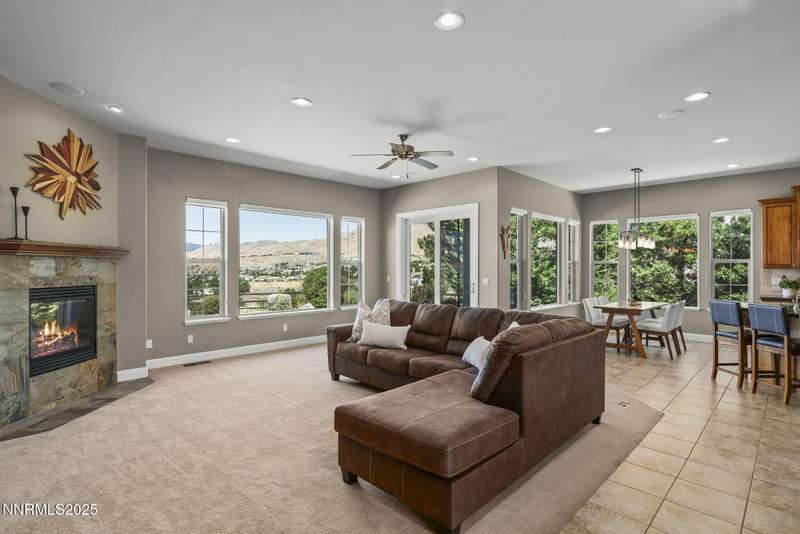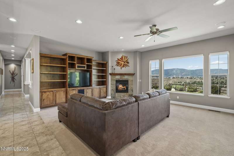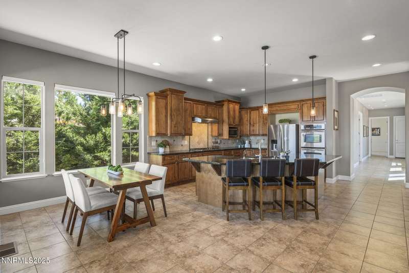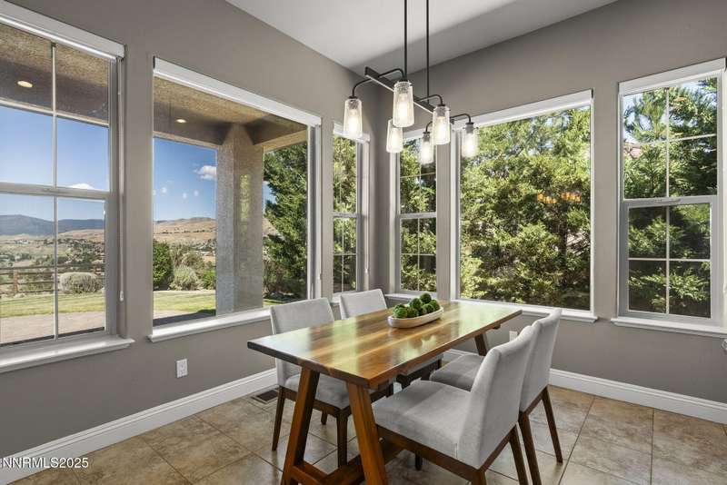 Breathtaking 360° Views of the surrounding mountains, valley, golf course, high desert, and mature trees frame this exquisite single-level estate located in the prestigious Somersett community. Featuring 4 spacious ensuite bedrooms, 4.5 bathrooms, an office, and 3,759 sq ft of thoughtfully designed living space on just over half an acre, this home perfectly blends luxury, functionality, and indoor-outdoor living. Enter through a private gated courtyard framed by lush, mature landscaping. Inside, you're welcomed by soaring ceilings, wide hallways, and an abundance of natural light. The expansive great room showcases custom built-ins, a gas fireplace, built-in speakers, and a ceiling fan, creating a warm and inviting space for both everyday living and entertaining. The chef's kitchen is beautifully appointed with a double oven, gas range, oversized island, walk-in pantry, and extensive cabinetry—all opening seamlessly to the great room. A formal dining room offers the perfect setting for elegant gatherings, while the separate living room provides flexible space for a game room, media lounge, or second living area.The oversized primary suite is a true retreat with a spa-like bathroom featuring a jetted tub, separate shower, dual sinks, and a large walk-in closet. Second bedroom with ensuite bathroom has a seperate entrance and could be used as an office , bedroom, or a workout room. Additional bedrooms are thoughtfully situated on the opposite wing, each with its own ensuite bath, ensuring privacy for all. Enjoy no rear or side neighbor, a three-car garage (2-car plus separate 1-car), tile roof, stucco exterior, and mature landscaping in both the front and backyard. Step outside to miles of scenic hiking and walking trails, with a bike park just moments away—an outdoor enthusiast's paradise. All of this, just minutes from shopping, dining, golf, and entertainment. Don't miss this perfect opportunity to own your dream home!
