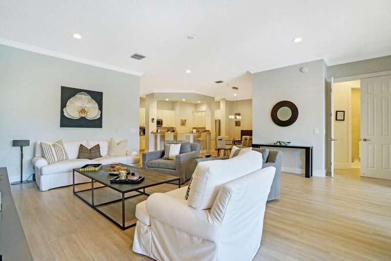 One of a kind Villa 4 bedroom/4.5 bathroom in the desirable Equestrian Club Estates! Beautiful home at the end of a private cul-de-sac with two Master bedrooms overlooking the water. Newley remodeled bedrooms and bathrooms. This property features a unique 3 car garage and an extra large driveway. Relax and let your dogs play in the fenced backyard while you are just a short golf cart ride away from WEF and Equestrian venues.