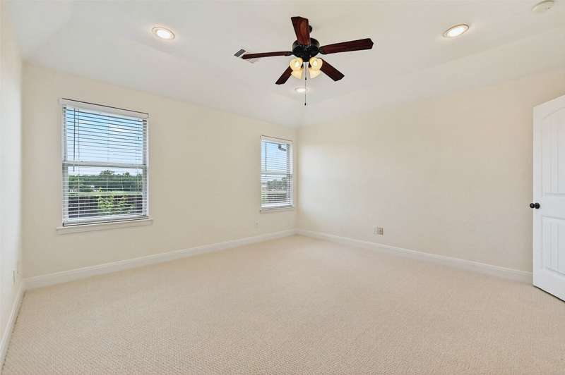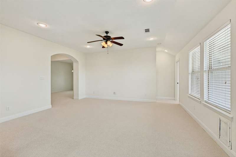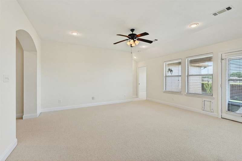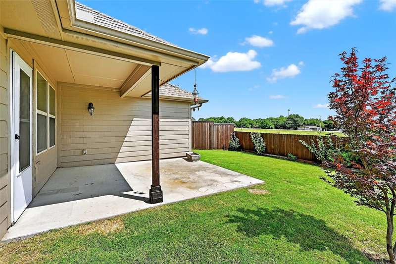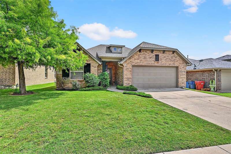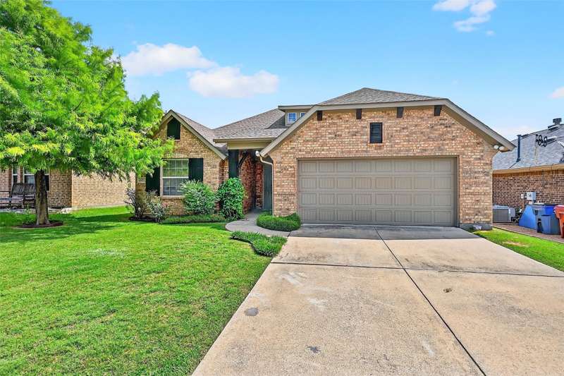 Welcome to this charming single-story brick home, perfectly situated in a serene neighborhood with a mature tree offering shade and character to the beautifully landscaped front yard. A covered front porch invites you into a spacious entryway that opens to a formal dining areaideal for gatherings and special occasions. Designed with an open floor plan concept, the heart of the home features a warm and inviting kitchen complete with stunning wood cabinetry, a large center island, granite countertops, and a cozy eat-in dining area. Whether entertaining or enjoying a quiet night in, this layout offers both functionality and style. The expansive master suite is a true retreat, boasting a luxurious soaking tub, dual vanities, a walk-in shower, and a generous walk-in closet. Additional highlights include a large covered back patioperfect for outdoor dining or relaxingoverlooking a peaceful greenbelt for added privacy and scenic views. Located within walking distance of the local elementary school, this home is also part of a vibrant community offering top-notch amenities, including a swimming pool, playground, and basketball court.