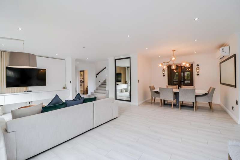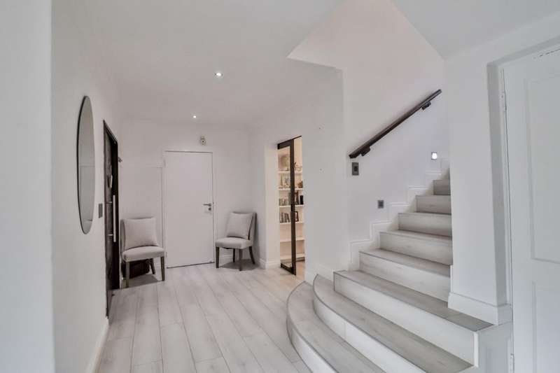 Beyond the kitchen, a second lounge area beckons, accessible through sliding doors, leading to a luscious garden and an inviting outdoor patio, perfect for creating a dedicated space for the kids or simply relaxing in tranquility. Just before ascending the elegant staircase to the upper level, you'll find a third lounge or library, offering a cozy retreat that connects you to the serene backside of the garden.