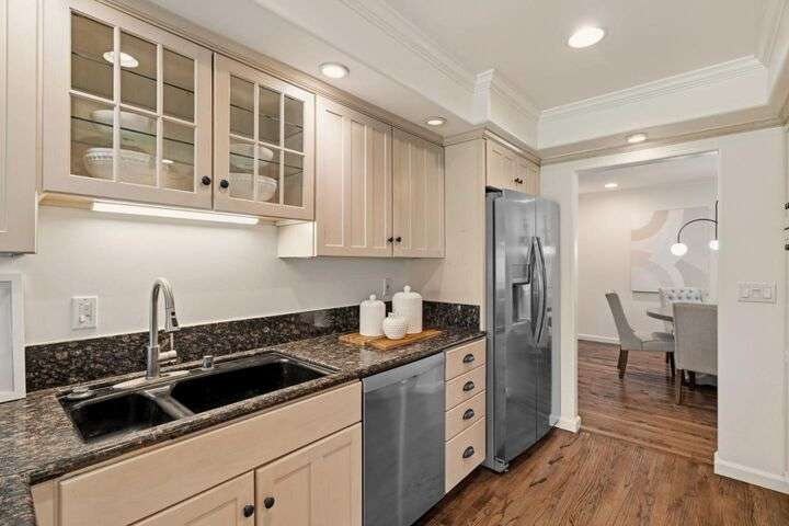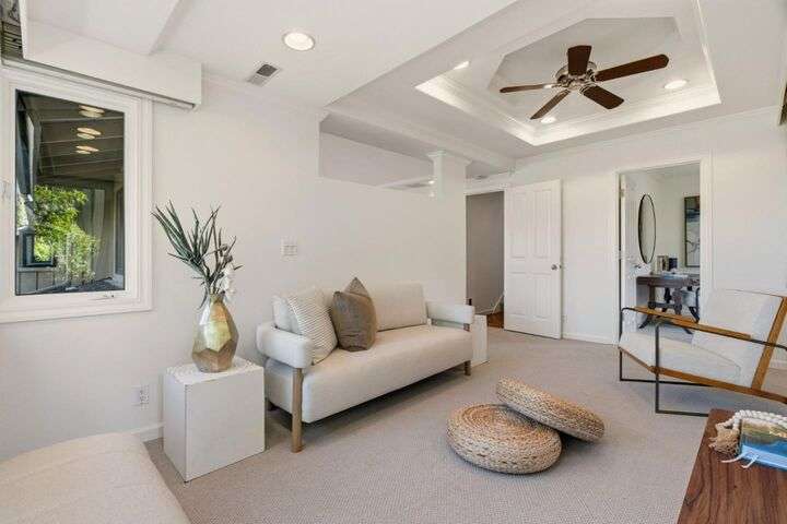 Wake up to stunning views from this sought after end-unit townhome overlooking the 14th green of Sharon Heights Golf & Country Club. Enjoy the perfect blend of luxury, privacy, and natural beauty in a peaceful, tree lined setting. Among the largest homes in the community, this residence features a spacious living room with French doors that open to the rear patio and golf course ideal for entertaining with seamless indoor-outdoor flow. A charming breakfast nook offers serene morning views, complemented by a chefs kitchen, formal dining room, and a cozy office or reading room with a built-in bench. Upstairs, the impressive primary suite boasts panoramic golf course views, a private sitting area, separate office, ensuite bath, and walk-in closet. Two additional bedrooms, a full bath, and a spacious loft with a whimsical play area for kids or grandkids complete the upper level. Fresh interior paint, new upstairs carpet, a powder room, laundry room, and an attached two-car garage add comfort and convenience. Enjoy community pools and spas, excellent Las Lomitas schools, and proximity to major freeways, top tech and venture firms, and Stanford Shopping Center.