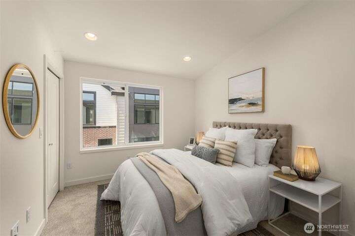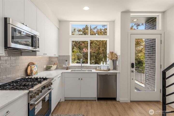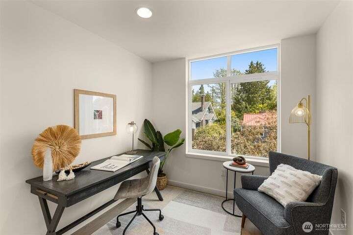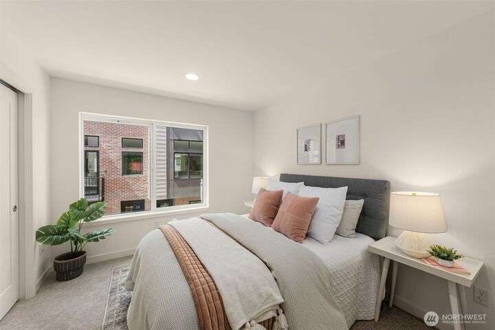 Available now - the Willow on 12th community by Shelter Homes. Featuring a charming brick facade, modern interior layout, & 2 bedrooms PLUS an additional flex/office space. A partly covered & fenced courtyard patio adds immediate value! From the tree-lined sidewalk enter the classic brownstone-like steps into the main floor to find the spacious kitchen w/ gas cooking! Enjoy the dining and living room spaces on your way to the private back patio - ask how it will look when complete! The 2nd level is a bedroom, adjacent full bath, & an office/den area. The 3rd level is the primary suite w/ a private balcony! Nearby: Soundview Playfield, Baker Park, Golden Gardens, & dining/shopping(Met Market). Act now to secure pricing! Fall move-in!
