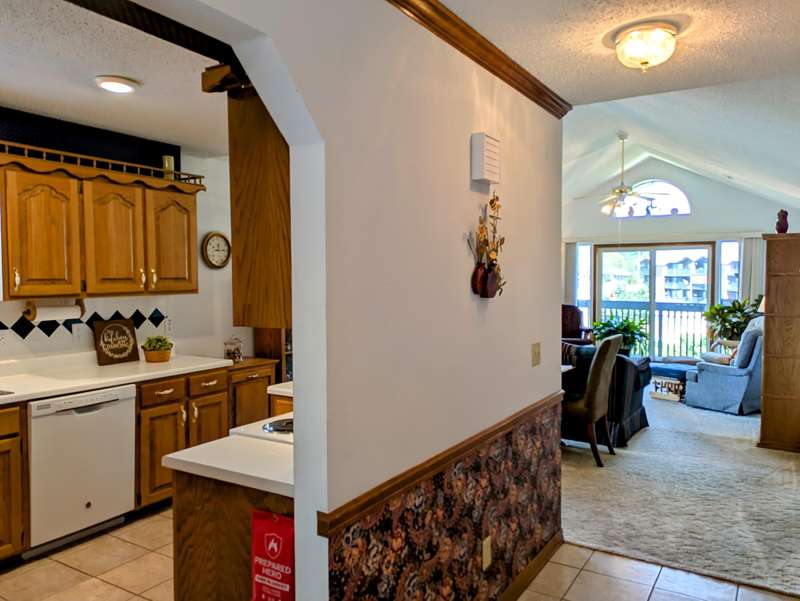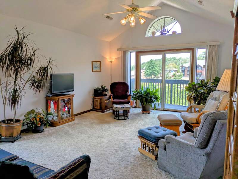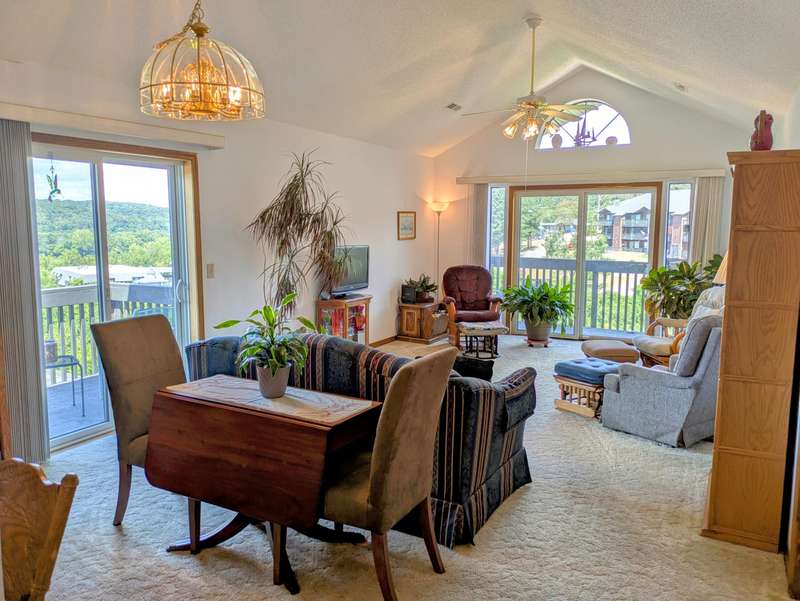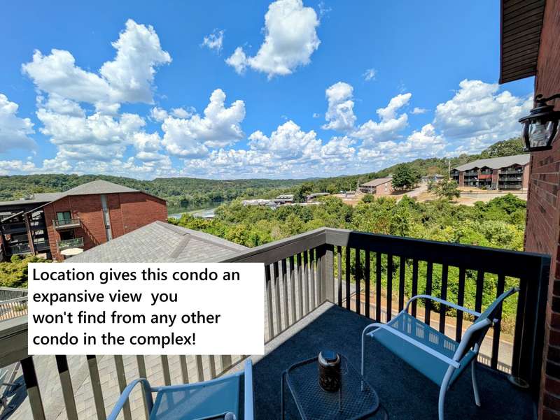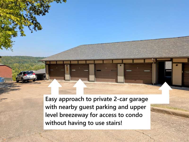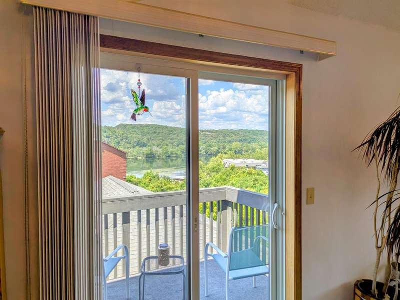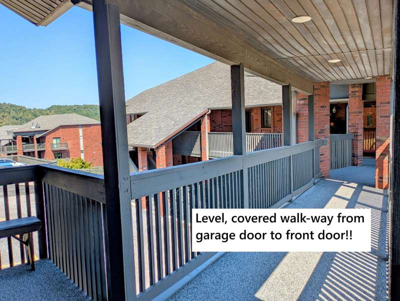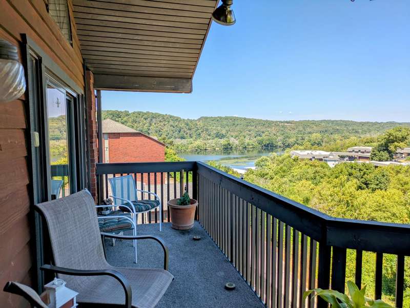 NO STAIRS REQUIRED for this immaculate TOP LEVEL 2BR, 2BA LAKEVIEW corner unit. Offering 1210SF of well-loved and maintained living space; BACK AND SIDE DECKS overlooking rolling hills and SHIMMERING LAKE; 2-CAR GARAGE just steps from your front door; and 10x24 BOAT SLIP. Enjoy vaulted and tray ceilings you only find in upper-level units, plus no worries of any noise from above. Then consider the bonus of natural light from kitchen window and side deck off dining area, both upgrades unique to end-units. Bright and airy living room; casual open arrangement that's perfect for entertaining inside and out. Roomy kitchen with updated appliances, window sink, quality wood cabinets throughout. Dining, living room, and master suite offer lovely views of the lake. Condo's north-facing covered deck stays wonderfully shaded much of the day with hints of morning and afternoon sun. Just wait until you see the sunsets! Over-sized laundry with pantry and oversized utility closet. Spacious MBR with oversized, updated walk-in shower, large vanity and walk-in closet. Guest BR and BA for visiting friends and family. Enjoy the clarity, comfort and energy efficiency of UPGRADED PELLA DOORS and WINDOWS, updated HVAC and water heater (2024), LG stacked washer/dryer (2021), PRIVATE 2-car garage with openers, shelving, workbench and attic storage that stays comfortable in extreme temps thanks to upgraded insulation. Easy, convenient access to the lake from your 10x24 boat slip with dockside storage and electric. Poised in a well-maintained residential complex in the heart of Forsyth, Taneycomo Terrace offers a peaceful lakefront setting with private boat launch, fishing docks, 3 swimming pools and more! Popular residential community with no nightly or long-term rentals allowed. Close to local shops and retail, and just a short drive to all Branson has to offer!