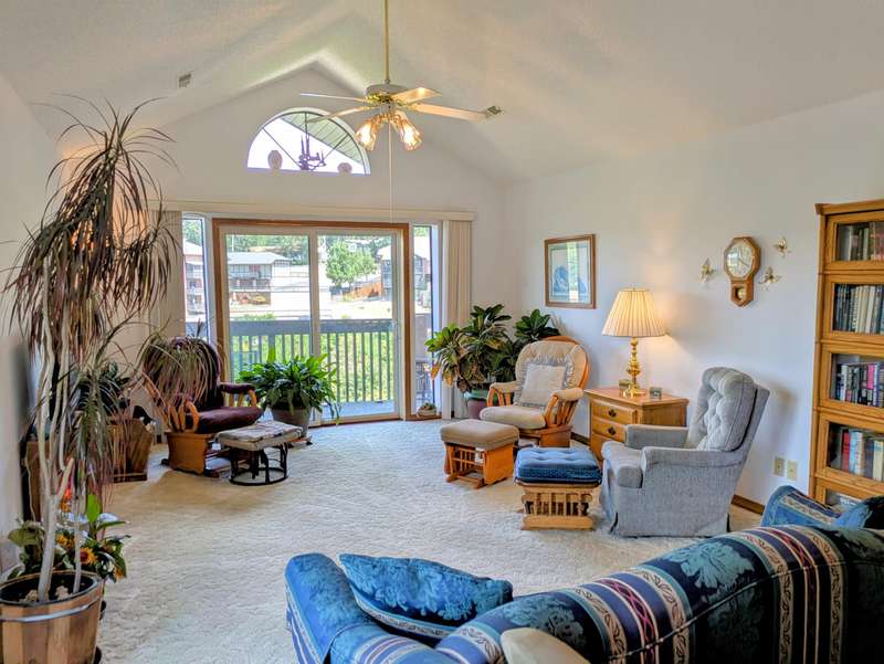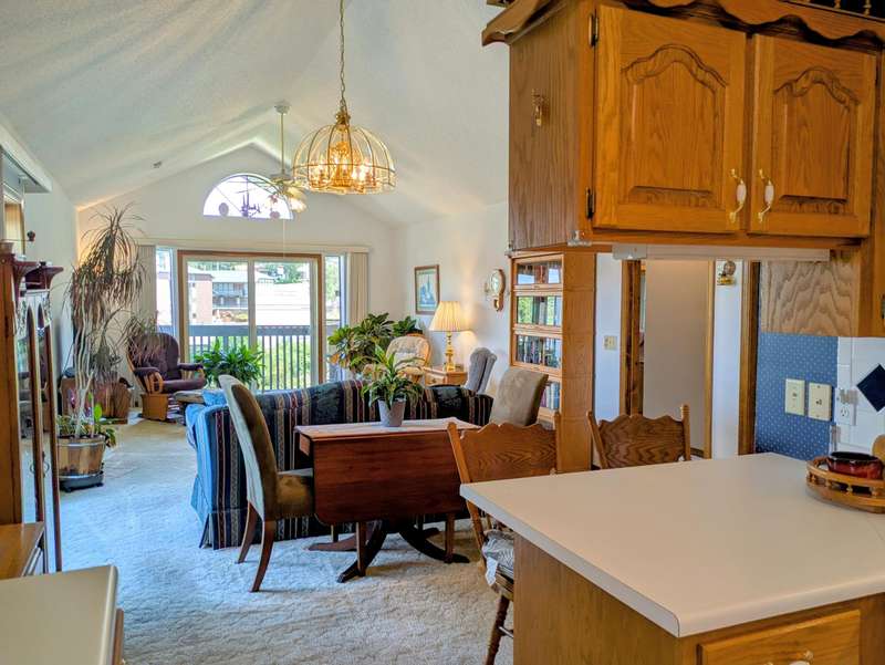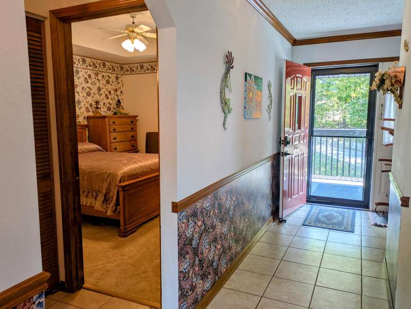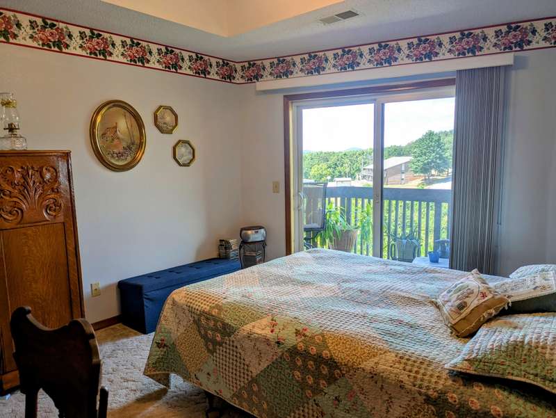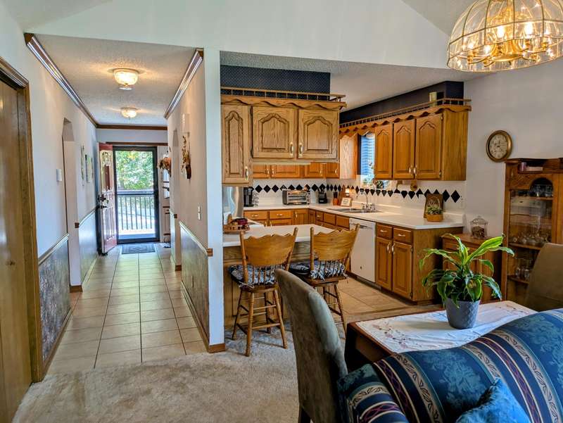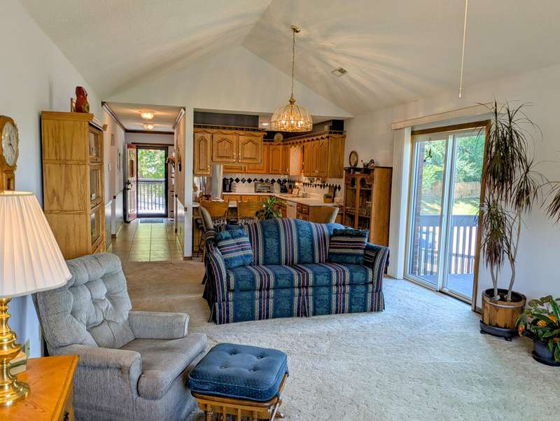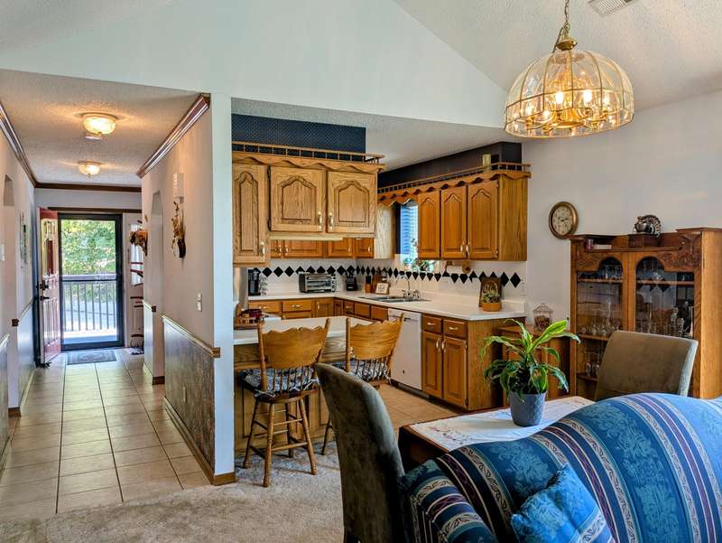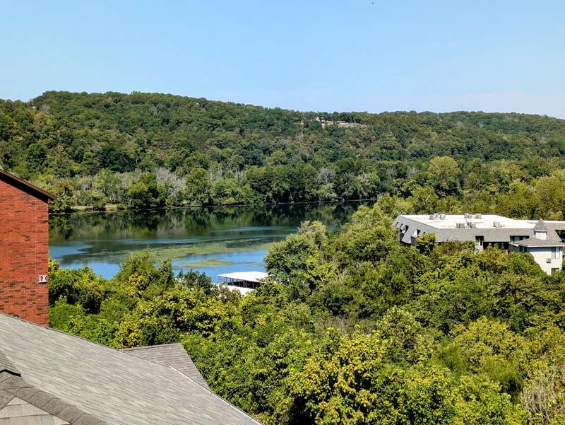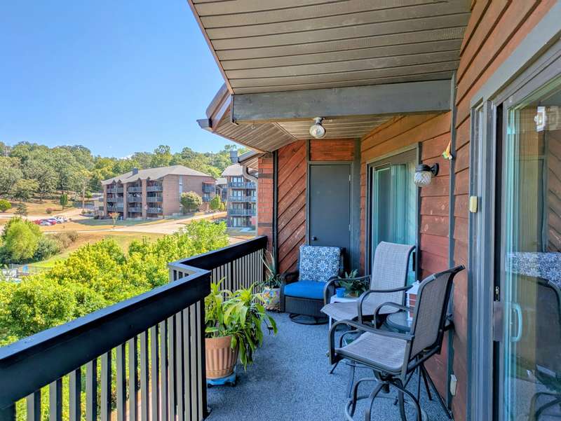 NO STAIRS REQUIRED for this immaculate TOP LEVEL 2BR, 2BA LAKEVIEW corner unit. Offering 1210SF of well-loved and maintained living space; BACK AND SIDE DECKS overlooking rolling hills and SHIMMERING LAKE; 2-CAR GARAGE just steps from your front door; and 10x24 BOAT SLIP. Enjoy vaulted and tray ceilings you only find in upper-level units, plus no worries of any noise from above. Then consider the bonus of natural light from kitchen window and side deck off dining area, both upgrades unique to end-units. Bright and airy living room; casual open arrangement that's perfect for entertaining inside and out. Roomy kitchen with updated appliances, window sink, quality wood cabinets throughout. Dining, living room, and master suite offer lovely views of the lake. Condo's north-facing covered deck stays wonderfully shaded much of the day with hints of morning and afternoon sun. Just wait until you see the sunsets! Over-sized laundry with pantry and oversized utility closet. Spacious MBR with oversized, updated walk-in shower, large vanity and walk-in closet. Guest BR and BA for visiting friends and family. Enjoy the clarity, comfort and energy efficiency of UPGRADED PELLA DOORS and WINDOWS, updated HVAC and water heater (2024), LG stacked washer/dryer (2021), PRIVATE 2-car garage with openers, shelving, workbench and attic storage that stays comfortable in extreme temps thanks to upgraded insulation. Easy, convenient access to the lake from your 10x24 boat slip with dockside storage and electric. Poised in a well-maintained residential complex in the heart of Forsyth, Taneycomo Terrace offers a peaceful lakefront setting with private boat launch, fishing docks, 3 swimming pools and more! Popular residential community with no nightly or long-term rentals allowed. Close to local shops and retail, and just a short drive to all Branson has to offer!