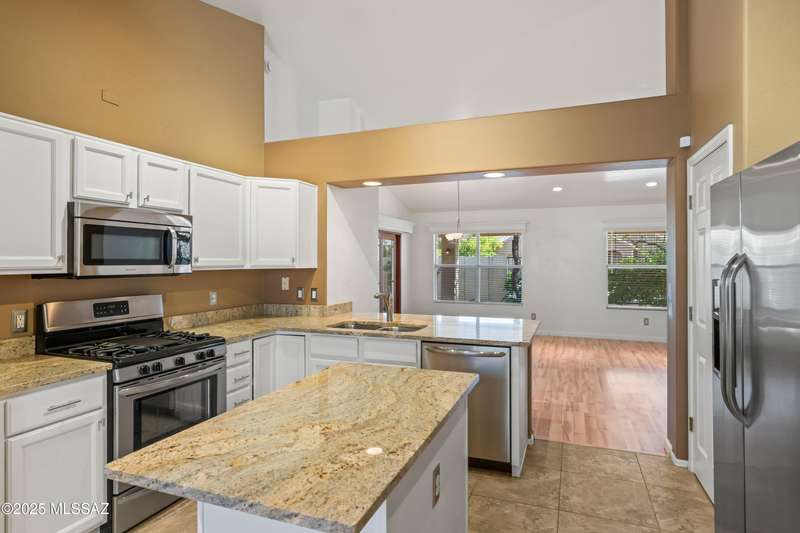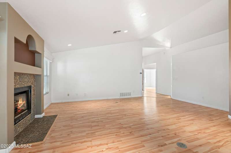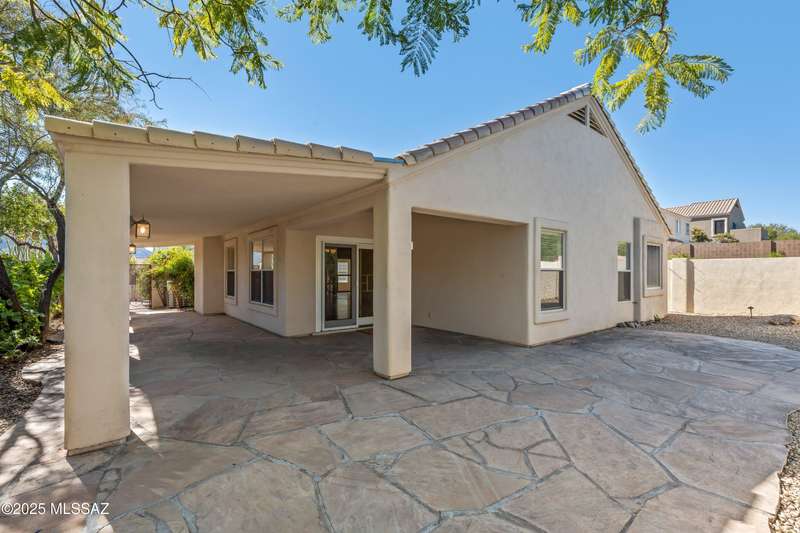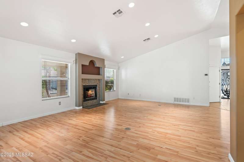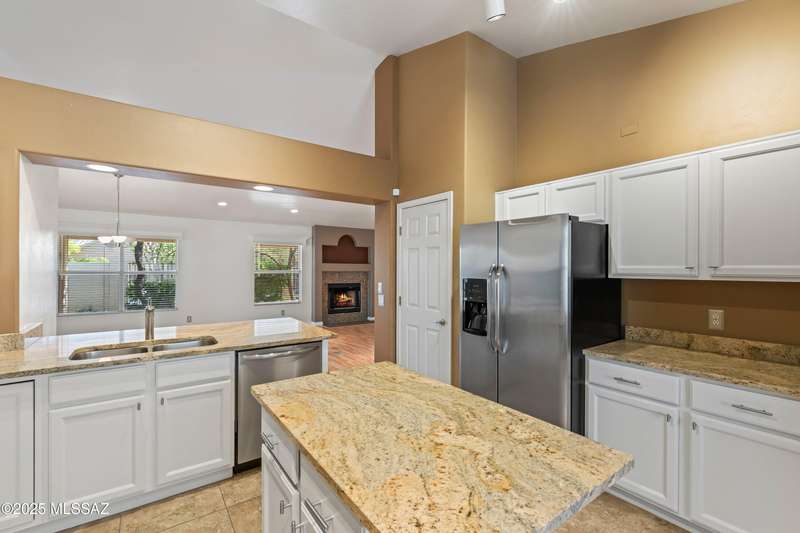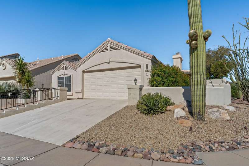 Welcome to this 3BD/2BA (1596 sq ft) home perfectly situated on a desirable corner lot in the highly sought-after Catalina Shadows community. Enjoy an open-concept floor plan featuring a cozy fireplace in the great room, neutral colors throughout, laminate and tile flooring, no carpet! The chef's kitchen is a true centerpiece with granite countertops, abundant cabinetry, and a spacious island perfect for meal prep or casual dining. French doors lead to the inviting owner's suite complete with dual vanities, a large walk-in shower, and a generous closet. The split floor plan ensures privacy for guests. Step outside to your private wrap around flagstone patio and take in the stunning mountain views. With no polybutylene pipes, this home offers peace of mind and modern comfort.
