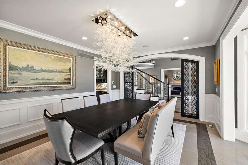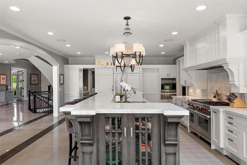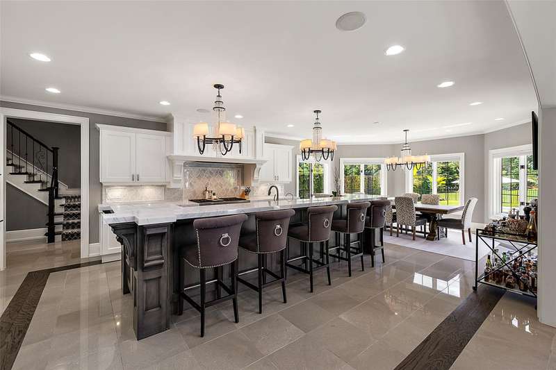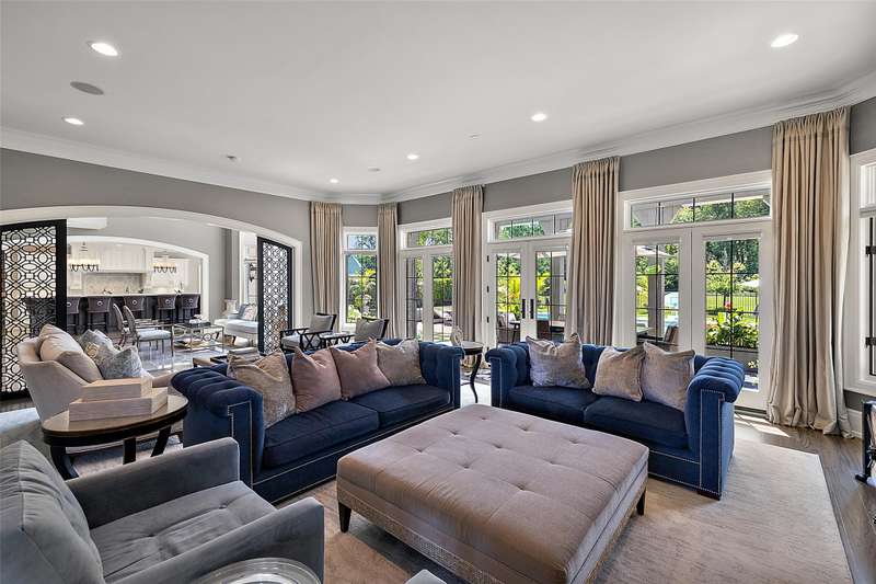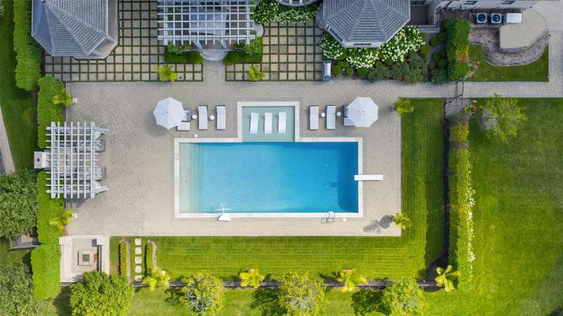 Welcome to this magnificent Dominick Tringali-designed estate, ideally situated on an impeccably manicured two-acre corner lot. Created for luxurious living and effortless entertaining, this exceptional residence offers an unparalleled lifestyle both inside and out. The dream kitchen is sure to impress, fully equipped with top-of-the-line cabinetry, premium appliances, and an expansive island with ample seating. Enjoy stunning views of the outdoor living space, creating the perfect setting for entertaining. The home boasts an easy flow from room to room, offering a blend of inviting and functional spaces. The private library provides an ideal spot for a home office or quiet escape. The great room features soaring ceilings, custom millwork, and panoramic views of the glistening pool. Take one of two staircases to the upper level, where you’ll find the luxurious primary suite featuring a spa-inspired bathroom with dual vanities and a spacious walk-in closet. A beautifully appointed laundry room is thoughtfully designed with abundant counter space and storage. Each of the three additional bedrooms is generously sized and includes its own en-suite bath. The lower level is an entertainer’s dream, complete with a game room, a large great room with a home theater system, a stylish bar, and a custom wine cellar. Step outside to your private backyard paradise, where summer dreams come to life. Your outdoor enjoyment begins with the expansive pool , two covered pergolas, and a custom firepit with built-in seating. Entertain in the outdoor kitchen, with a nearby pool house that includes a changing area and full bath for added convenience. The lush green space features a custom bocce ball court and plenty of open lawn for recreation. This extraordinary home is packed with features too numerous to list. Please refer to the attached feature sheet for full details. Schedule your private showing today and experience the ultimate in luxury living.