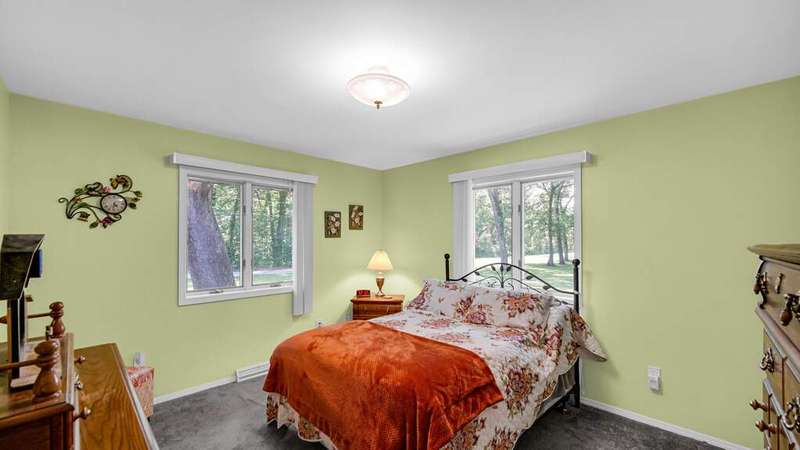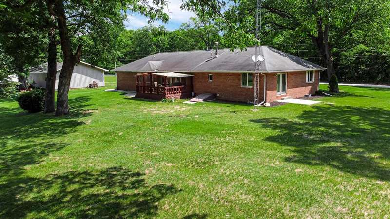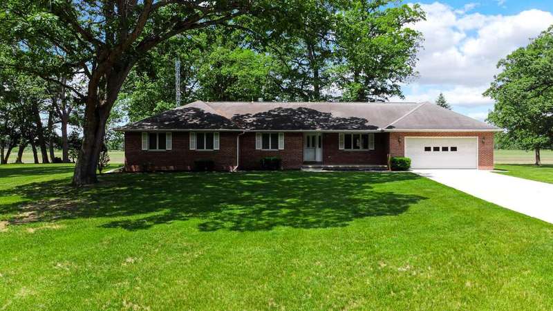 Two miles from Bass Lake....Welcome to this charming all-brick ranch home nestled on 10 peaceful acres in the countryside! This spacious home offers 4 generously sized bedrooms and 3 bathrooms, including a serene primary suite complete with an ensuite bath and French doors that open to your own private patio. The extra-large family room is perfect for relaxing, while the formal dining room (or flex room) adds versatility to your living space. Enjoy the outdoors in the screened-in porch or take advantage of the 2.5-car attached garage.The full, finished basement is a true highlight, with its own exterior entrance, geothermal heating, and a cozy wood burner for those chilly evenings. Plus, the basement has plumbing for an additional bathroom.For those who love to tinker or need extra storage, you'll love the massive barn featuring both 110 and 220 electric, a concrete floor, and new commercial garage doors. There's also a second barn on the property, offering even more opportunities for use!Come experience country living at its finest with this incredible property.