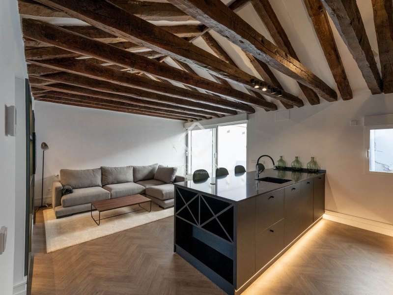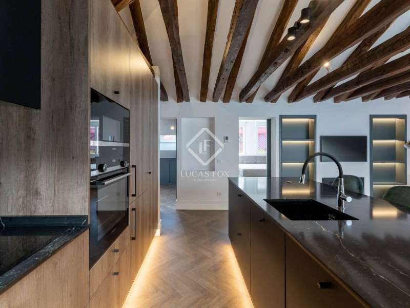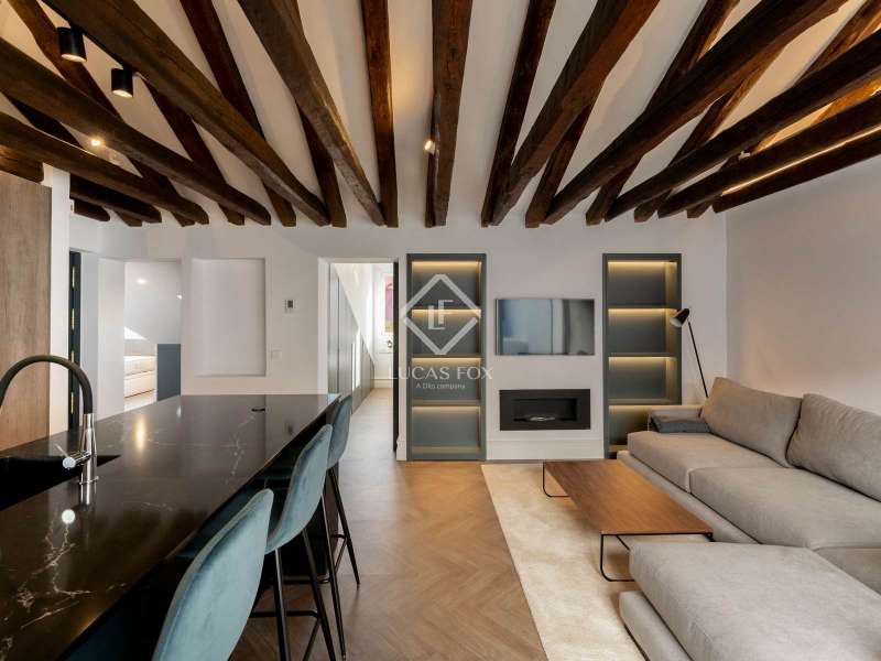 Lucas Fox presents this magnificent penthouse, renovated to a high specification, located just a few meters from Plaza de Salesas, one of the most sought-after locations in the Justicia area of Madrid. The penthouse consists of two bedrooms with private bathroom and a spacious living area that houses the living-dining room and open-plan kitchen. The day area opens directly onto the approximately 20 m² terrace. The property is located in a classic, well-maintained, early 20th-century red brick building with an elevator. Contact us for more information.