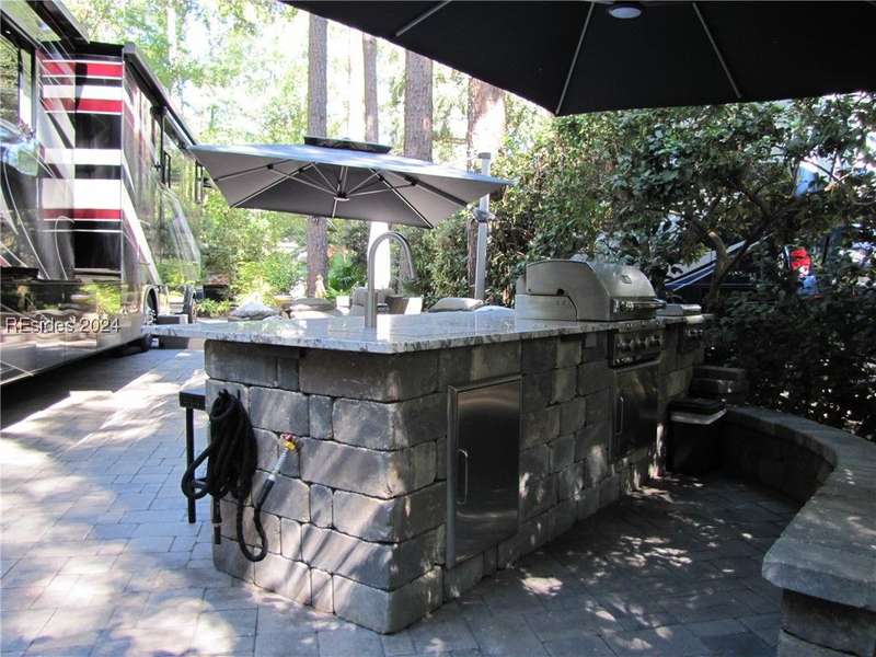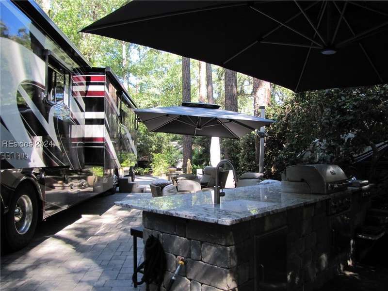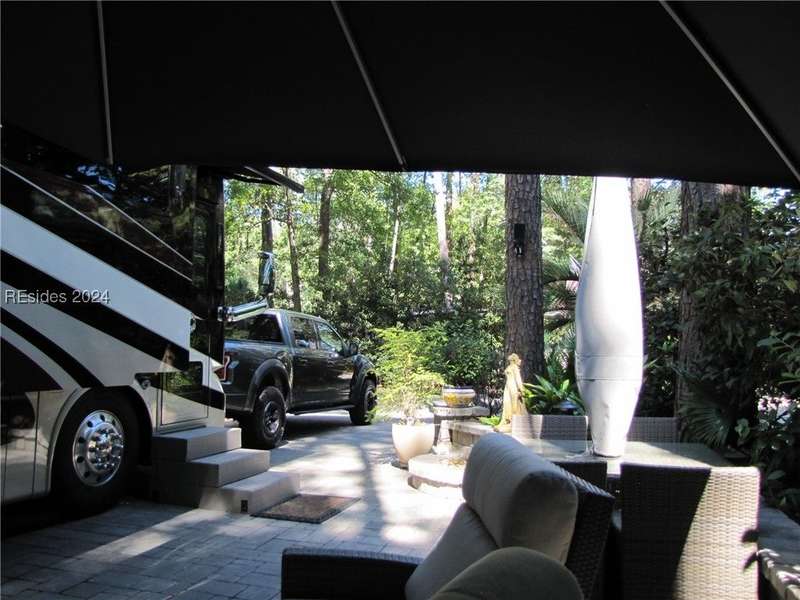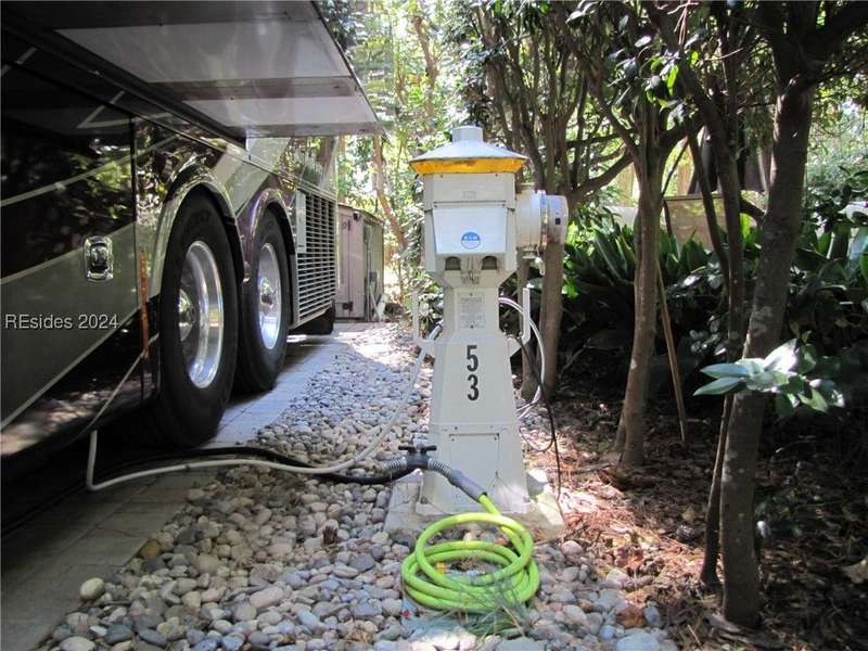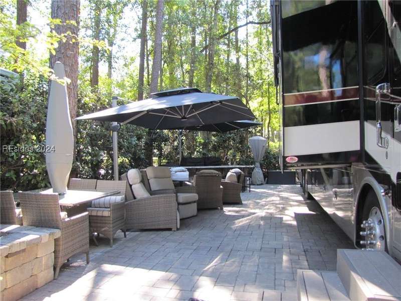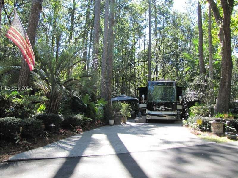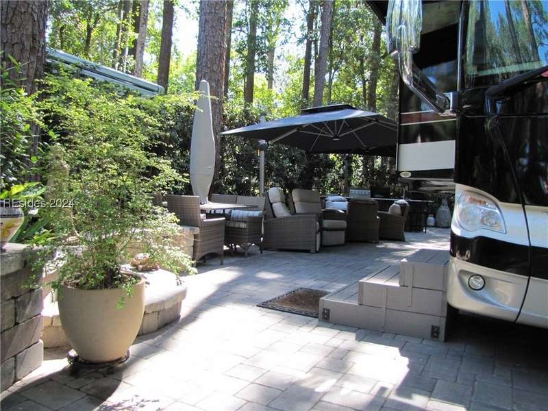 Marquis lot 53 has it all. Turnkey w/immense entertainment space, top end furnishings, waterfall, gorgeous kitchen & perimeter privacy! Newer paver lot has so much room, accommodating a 45' coach and two full size trucks. And check out the awesome furniture and multiple umbrella arrangements they're including. New pedestal, new max size shed with electric and lighting. Irrigation, lighting, heater, bug zapper etc! Steps to the pool, racquet sports, clubhouse and laundry. Hilton Head Island Motorcoach Resort on the amenity driven south end has everything outside the front gates; shopping, restaurants, groceries, beach, bike paths, trolly, etc.