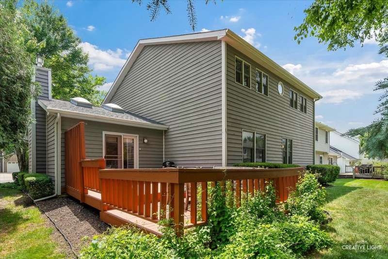 Introducing a meticulously maintained home, with a new furnace and air conditioner, on the market for the first time. With an array of special features, this is anything but a cookie-cutter residence! Enter from the covered porch into a welcoming vestibule-perfect for shoes and coats-before stepping into the main living area. The two-story foyer, bathed in natural light from a skylight, is impressively spacious and could easily serve as a gallery for family photos or a cozy library lined with books. The updated kitchen boasts granite countertops, stainless steel appliances, and a six-burner commercial-grade range. Enjoy casual meals in the eat-in kitchen area or at the breakfast bar. For year-round grilling, a Jenn-Air downdraft grill provides the perfect solution, whisking away smoke, steam, and odors. A separate dining room offers an ideal space for gatherings, while the expansive living room features exquisite architectural details in the ceiling, a gas fireplace with built-in bookshelves that shimmer in the firelight, and access to the newly stained deck and lush yard. On the second floor, you'll discover a spacious primary bedroom complete with two closets, crown molding, an ensuite bathroom, and a balcony that invites in light from the skylight. There are three additional bedrooms on the second floor - 2 feature walk-in closets. All 3 bathrooms have been updated with marble countertops. The basement presents a blank canvas, ready for your creative vision. Located within the award-winning Indian Prairie School District, this home is also served by the highly sought-after Neuqua Valley High School. Roof ~ 2018. Dishwasher 2025.