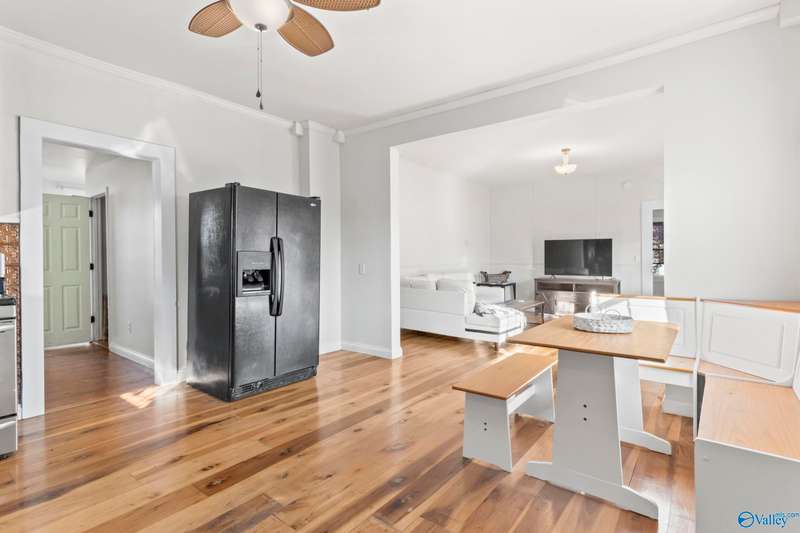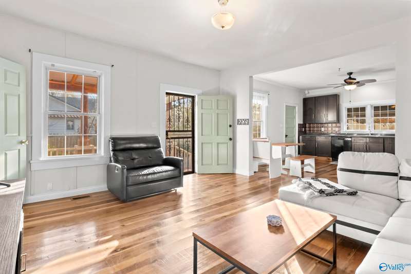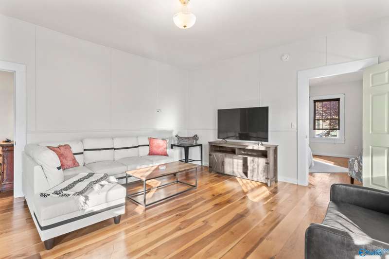 Charming and fully furnished, this move-in ready 2-bedroom, 1.5-bath 1920s bungalow offers historic character with modern updates just minutes from Downtown Huntsville and Lowe Mill. Features include new cedar porch columns, real hardwood floors, and an open living/kitchen layout with dark cabinetry, updated countertops, quiet-close cabinets, and all appliances—including washer and dryer. Both bedrooms are spacious, and the large backyard and side yard provide great outdoor living space. Major updates include HVAC (2025), water heater (2024), and roof (2024). All furniture remains, making this home fully furnished and truly turnkey.