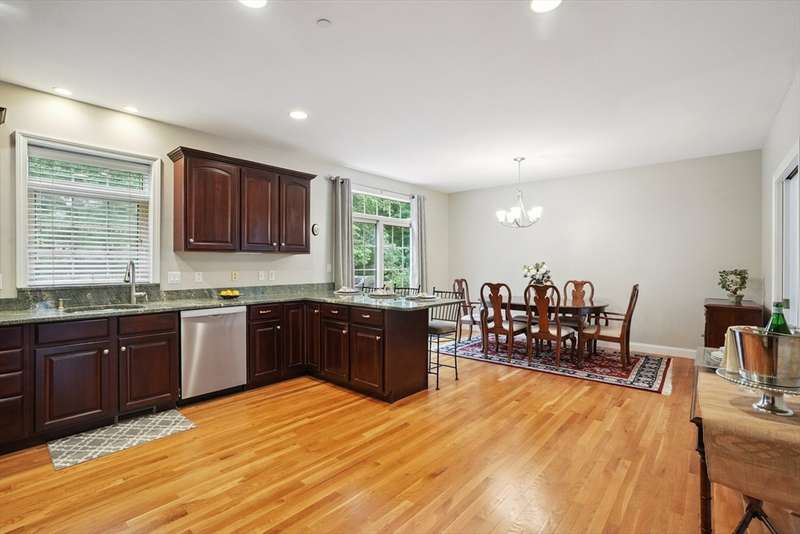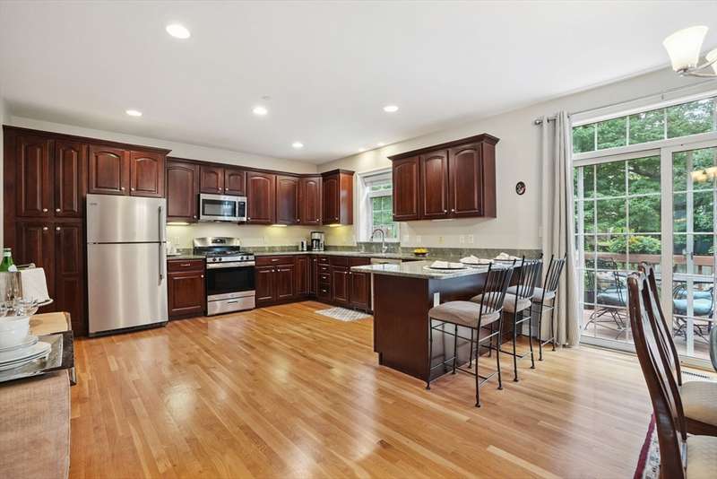 SPACE, LOCATION & VALUE The home sits back well OFF Lagrange in a professionally landscaped cul-de-sac. Live in the highly desirable Brook Farm Woods. This home has it all! Almost 2,400 sqft of Beautiful, light, and bright living areas on 3 levels. Open concept, high ceilings throughout, large windows with pretty views. Incredibly spacious kitchen & living room for entertaining, plus a grand Primary Suite. The 1st floor could be the perfect guest or in-law space if needed, or a family room. 3 gas fireplaces, hardwoods, glass pocket doors. A MUST-HAVE direct entry garage with storage space, an assigned parking spot, plus a space in your driveway. Even a mudroom area. For your outdoor enjoyment, a deck with a Weber gas grill hookup and yard space. Newer Roof, HVAC, water heater & appliances. Move right in and enjoy this carefree lifestyle. Great location near Chestnut Hill line. Commuter Rail 1 mile away, Easy access to Longwood Medical Center.