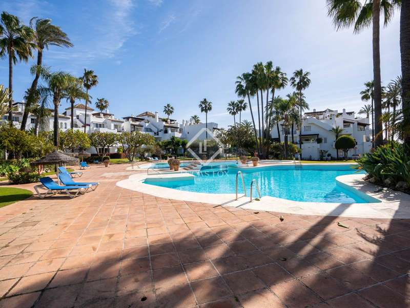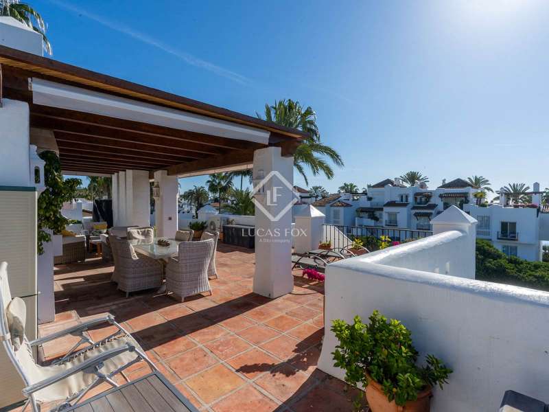 Step into luxury coastal living with this exquisite 3-bedroom, 2-bathroom penthouse located in the prestigious Alcazaba Beach community in Estepona. Perched in a serene corner of the development, this penthouse combines modern elegance with the warmth of Mediterranean living, boasting breathtaking sea, pool, and garden views from two sun-drenched terraces and a sprawling solarium. Fully renovated to an exceptional standard, this home features a brand-new kitchen and bathrooms, double-glazed windows, air conditioning, and stylish patio doors. The open-plan living and dining area seamlessly flows onto a spacious southwest-facing terrace, ideal for al fresco dining or simply soaking in the tranquil coastal ambiance. A beautiful solarium, complete with a newly refurbished pergola, offers the perfect setting for entertaining or unwinding under the Andalusian sun. Originally a 2-bedroom unit, this property now includes a third bedroom, enhancing both its space and versatility. The main suite includes a modern en-suite bathroom and private access to the terrace, while the two guest bedrooms share a contemporary bathroom and terrace access, all finished in a refreshing, light-filled style. This property would make an ideal home or holiday home for a small family. Please contact us for further information and to arrange a viewing.