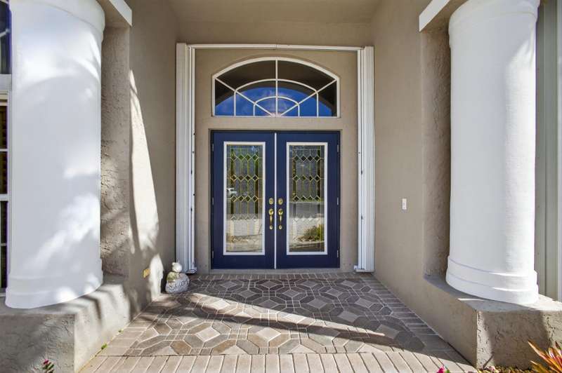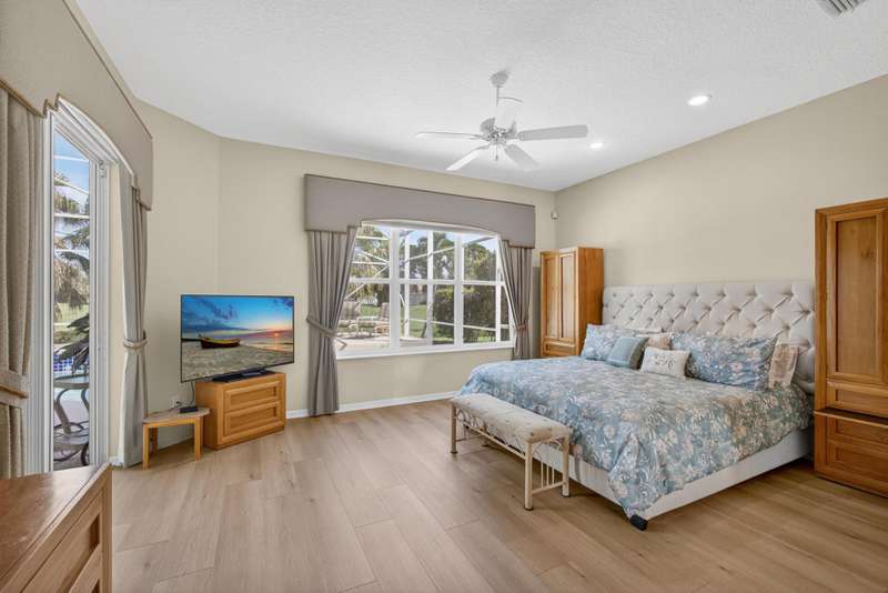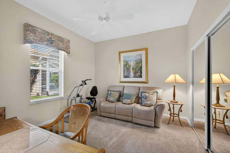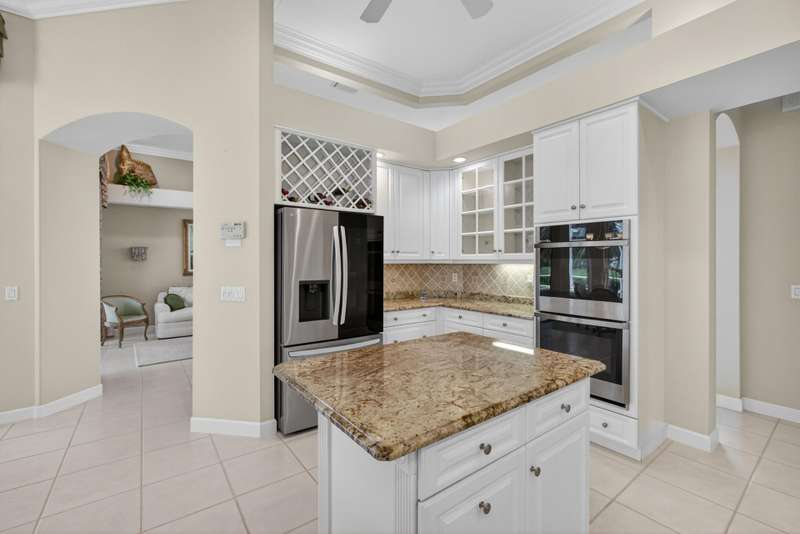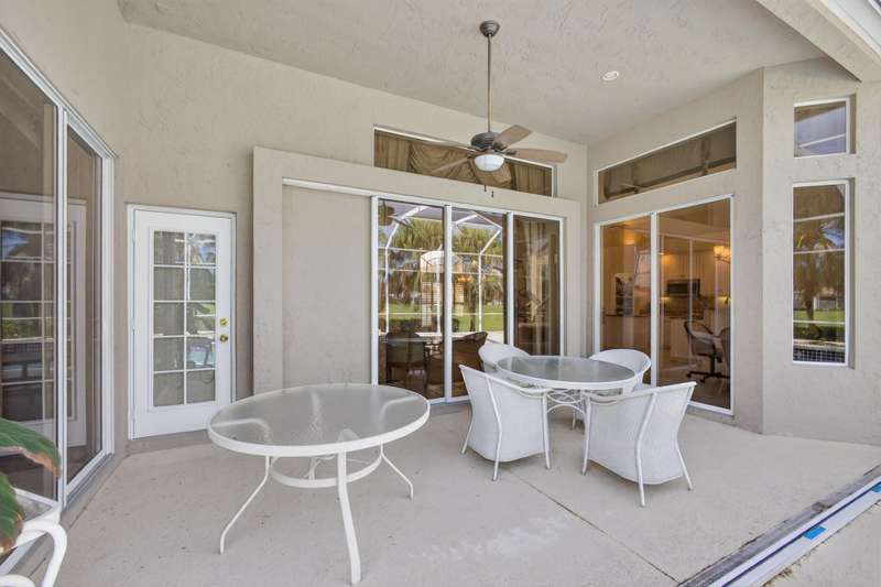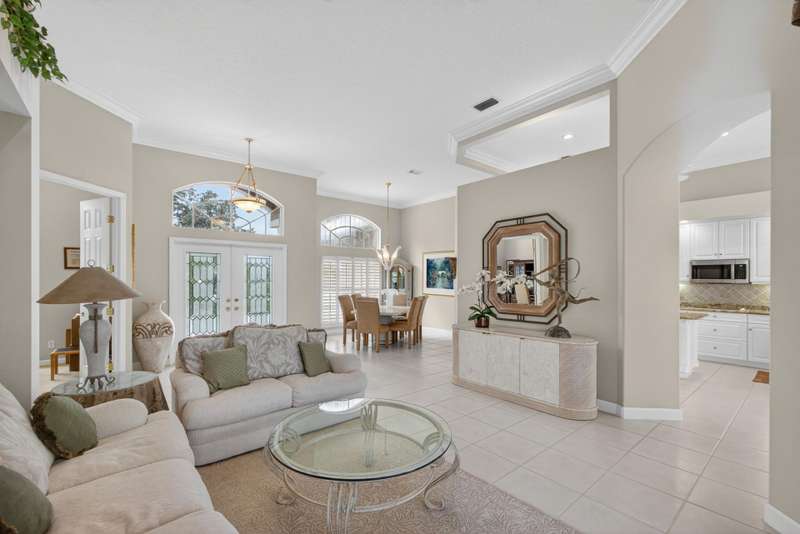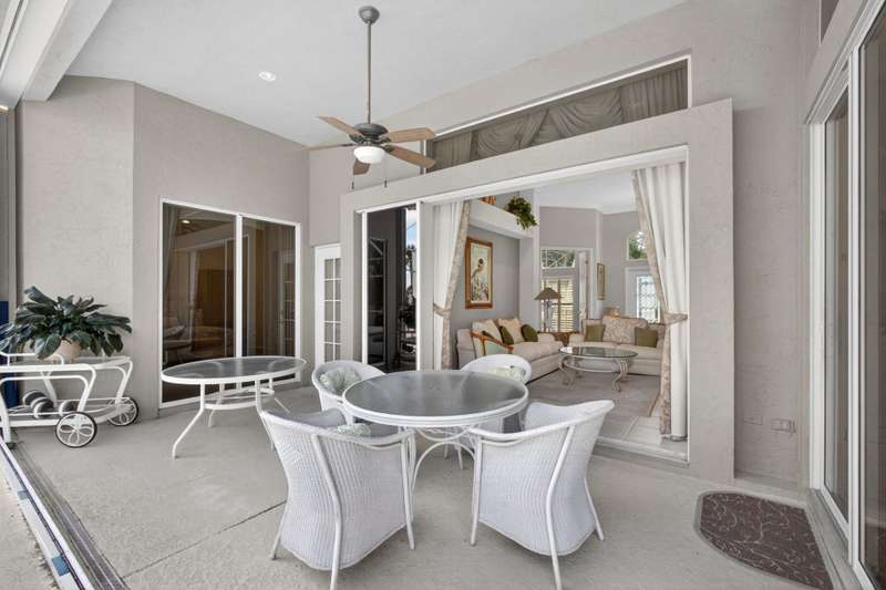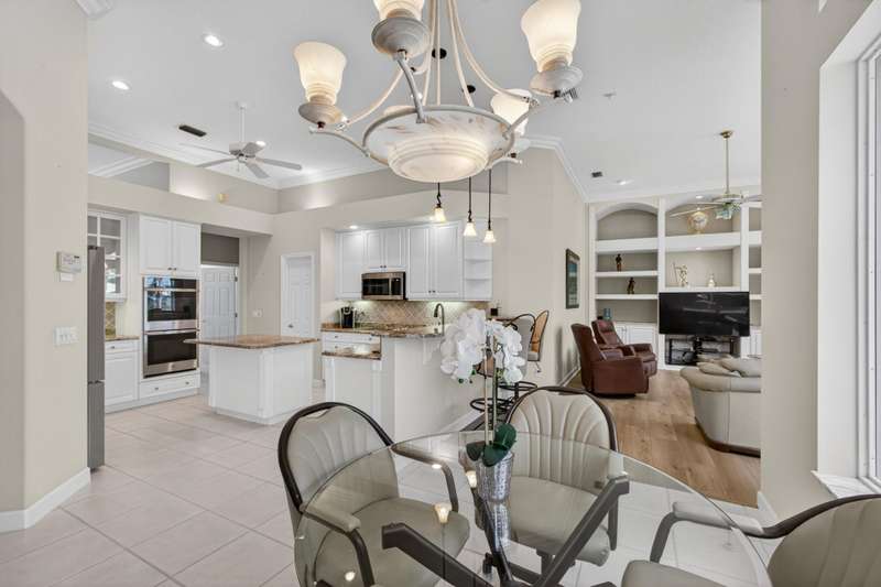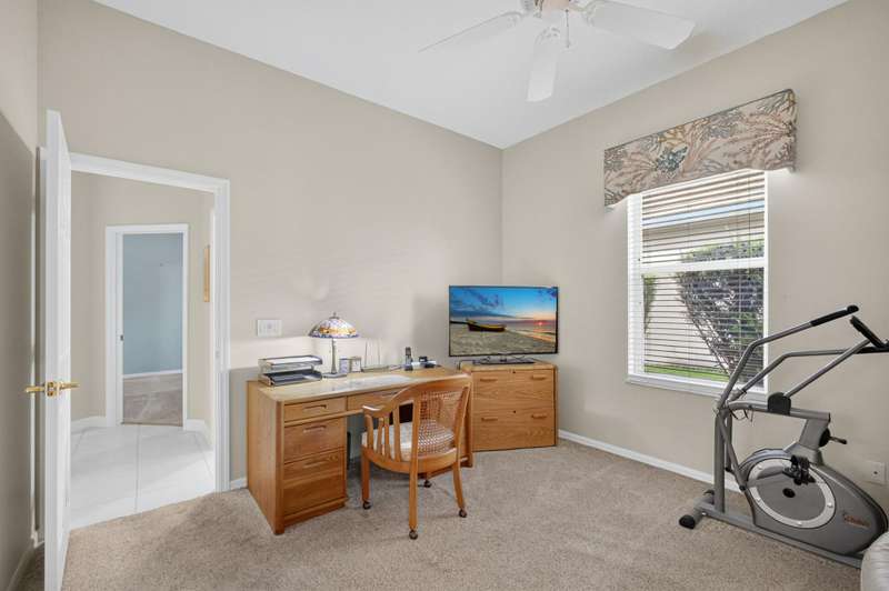 Discover the elegance of Monarch Country Club in this stunning 3-bedroom, 3-bathroom plus den home. Enjoy the spacious living with 14-foot ceilings, a large deck with heated pool and Jacuzzi overlooking the 9th hole of the golf course. The home features double door entry, a 3-car garage, new flat tile roof (2024), stainless steel appliances with double oven in kitchen, and complete accordion shutters. Beautifully landscaped yard with a large paver driveway. The community is man-gated with non-mandatory club membership. HOA includes lawn care, exterior painting every six years, cable, fiber optic internet, and more for just $575/month. One of the most sought-after floor plans in the community!