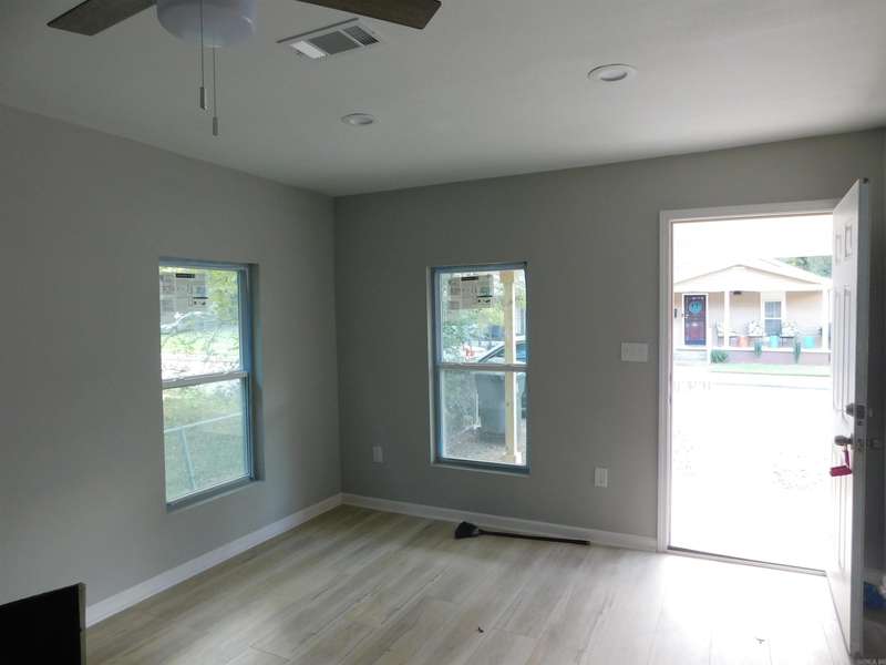 A brand new Interior with modern touches, colors, open floor plan, 3 bedrooms and 2 bathrooms. Master in back with own bathroom... Modern 1940's charm. New everything. The Master bath was added for more functionality and privacy.(2025) All flooring is new, HWT new, HVAC new and will be comleted on the 22nd. The home is all electric. Back steps will be completed prior to closing.House has good bones, wood subfloor, closed piers. Great Front porch to sit on and wave to some great neighbors. Little section of the street is all like family. Parking area on side of the house where concrete pad enters. Foundation/crawl space gaps to be filled in/repaired. Great for a first time buyer wanting a down town location or great investment property. Measuring is estimated, feel free to measure.