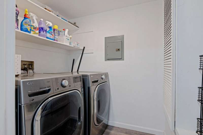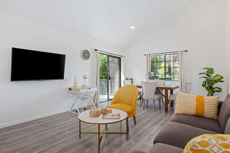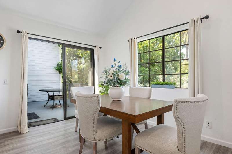 Tucked away on a quiet cul de sac, this cozy unit is situated in the Woodside Condo complex. Updated kitchen and baths and high ceilings make this a delightful place to call home. The private balcony is perfect for casual entertaining and BBQ's. Detached garage and a dedicated uncovered parking space in front of the unit makes for convenient parking.