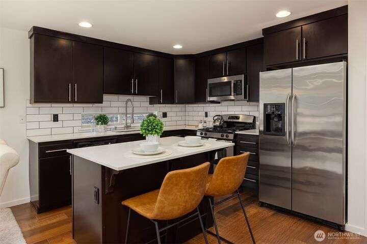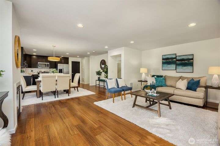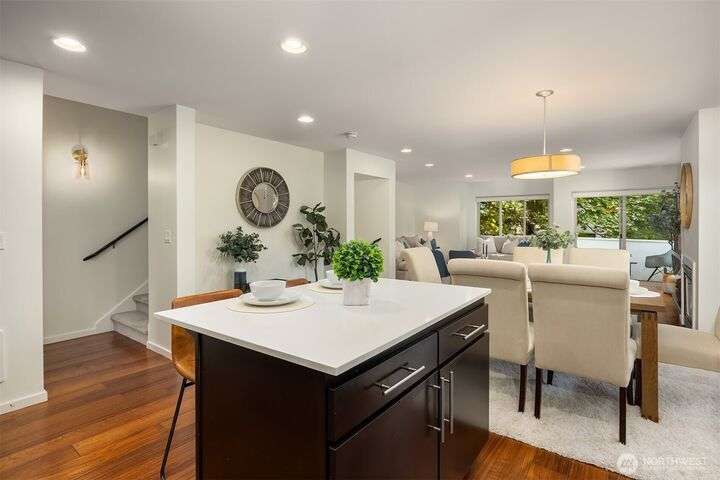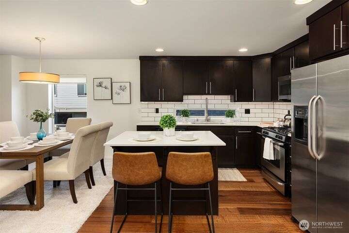 A unique offering awaits with this stylish and versatile townhome! Nestled off the main road, it offers a serene setting with both privacy and quiet. The main level features an open-concept layout with a spacious kitchen, bamboo flooring, pantry, and convenient powder room. Upstairs, you’ll find two generous bedrooms, each with vaulted ceilings and ensuite baths. The entry-level bedroom with a ¾ bath and private entrance provides flexible living options—perfect for a home office, guest suite, or MIL space. This home has it all, including an attached 1-car garage and a fully fenced backyard. Enjoy proximity to West Seattle, Alki Beach, neighborhood parks, and a variety of local restaurants, with quick access to downtown Seattle!