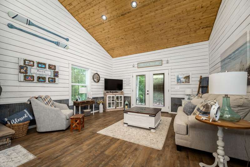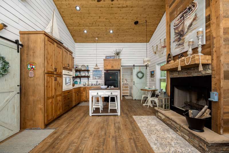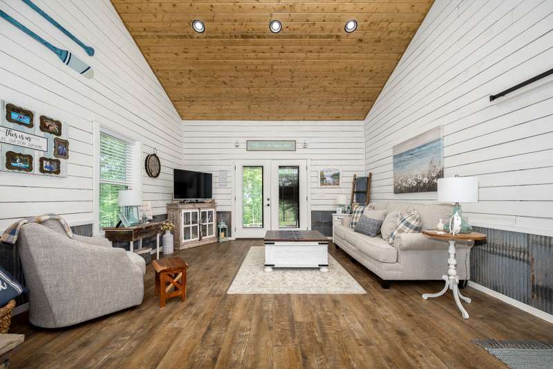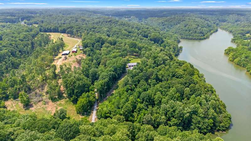 Discover a one-of-a-kind opportunity to own 19.4 acres on beautiful Tims Ford Lake offering over 1100 ft. of shoreline. This rare lakefront property features multiple potential building sites, making it ideal for private estate, family compound or future development. A custom-built Barndominium adds unique value, boasting a spacious 36' deep garage with 3 oversized bays- perfect for storing boats, vehicles or equipment and a 16'x80' covered back porch area ready to be finished. With direct access to the lake, this property is a dream for outdoor enthusiasts offering endless recreational possibilities right for your backyard. Serenity, space and potential awaits!!