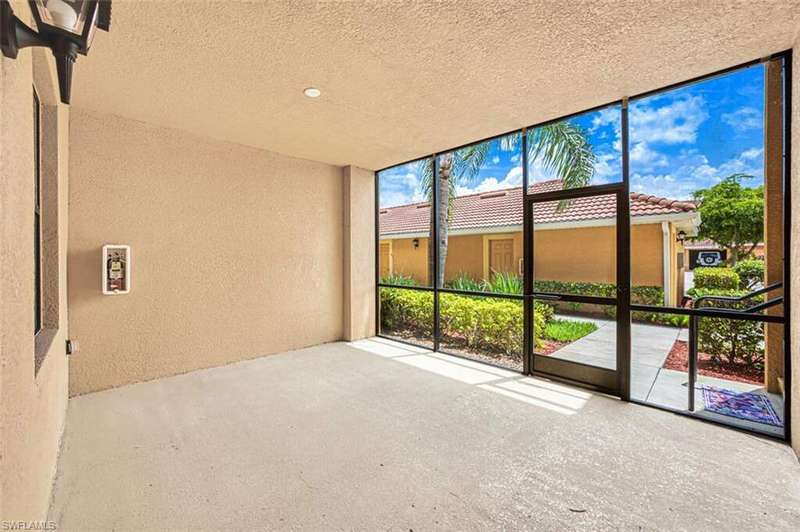 Welcome Home to Palmetto Cove. This spacious and inviting 2 bedroom + den, 2 bathroom condo is located on the ground floor and comes with its own single-car garage-right out front for easy access, plus a side door and opener. Before you even step inside, there's a large screened front lanai-perfect for a comfy seating area to enjoy your morning coffee or unwind in the evening. Inside, the kitchen is a standout with granite countertops, stainless steel appliances, and a cozy bay-window breakfast nook with peaceful preserve views. There's also a formal dining area and a bright, open living space that leads to a private den with double doors-great for a home office or extra guest room. The primary bedroom is spacious and features two walk-in closets, dual vanities, and a walk-in shower. From the living area, sliding glass doors take you out to a second screened lanai, where you can kick back and enjoy the quiet preserve and maybe catch a glimpse of some wildlife. You'll also love the impact windows, plus a full-size washer and dryer right in the unit. Palmetto Cove is a gated community with a clubhouse, heated pool, and spa-and the location is super convenient. You're close to beaches, shopping, dining, golf, medical centers, RSW Airport, and even spring training baseball. This one checks all the boxes-don't miss it!