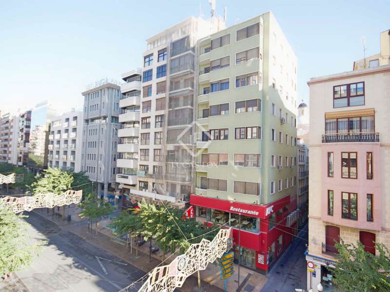 Lucas Fox International presents this magnificent property with high ceilings located in one of the most famous areas of Alicante, in the emblematic building "La Adriatica", which is on the corner of Rambla Méndez Núñez. You will not find a more central location in the whole city, with the best leisure areas at your fingertips, as well as numerous restaurants, cafes and shops. It also offers very good connections by bus, tram, train and the national road N-332. As for the beach, the apartment is just 600 metres on foot from the beautiful Postiguet beach, where you can swim with magnificent views of the Santa Bárbara castle. The property is completely renovated and offers spacious and modern rooms with natural wood flooring, high ceilings, air conditioning ducts, smooth walls and white lacquered doors. The furniture is modern in style and each bedroom has lined wooden wardobes with plenty of storage capacity. The apartment also has high quality windows and frames with an air chamber and a tilting system, which provides complete soundproofing to enjoy the tranquility of the home. Entering the apartment, we first find the hall, with a bedroom on the right that could be used as an office. Following the corridor, on the left are three other large bedrooms, while on the right we have the kitchen equipped with all the necessary appliances and two complete bathrooms with porcelain stoneware floors (one with a bathtub and the other with a shower). At the end of the corridor, the living-dining room is very bright with large windows and beautiful views, as well as a dining area. Real estate for sale in this part of the Rambla is very limited, so this modern and cosy home represents a unique opportunity if you want to enjoy life in the best area of the city. Please contact us to arrange a visit.