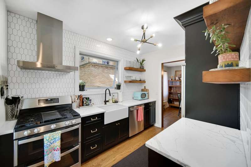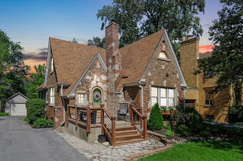 Storybook Sears Cape Cod in the heart of Homewood! Step into timeless charm with this vintage 4-bedroom, 2-bath Cape Cod, a true 1930's Sears Roebuck catalog home thoughtfully updated for today's living. Classic details like hardwood floors, arched doorways and original wood panel doors pair beautifully with modern upgrades throughout. The generous living room welcomes you with a cozy wood-burning fireplace & double arched built-ins while the adjoining dining room offers the perfect setting for gatherings and everyday meals. The remodeled kitchen is a showpiece, featuring custom cabinetry, quartz countertops, stainless steel appliances, a custom hood, floating shelves, and a charming corner cupboard. Two first-floor bedrooms share a stylish hall bath with mini hex tile flooring, subway tile tub surround, shiplap wainscoting, a darling pedestal sink, updated lighting, and a wood-detailed ceiling. Upstairs, you'll find a two bedrooms, currently used as a guest room/office and MBR alongside a skylit, updated bath with ceramic surround shower, modern flooring, and a floating vanity. Or that space could work as a MBR w/den/office instead of 2 BR's depending on your needs. The semi-finished basement offers a rec room, possible BR5/office, built-in cabinetry, laundry, work & tool room, and plenty of storage. Outside, the home's storybook brick-and-inset-stone exterior shines with a redesigned entry porch, arched refinished & refitted front door, and newer custom screen door. A patio, fenced yard and detached 1-car garage complete the package. Located just steps from downtown Homewood, the Metra, Irwin Park, and even Dairy Queen, this home blends vintage character with modern comfort in a perfect location.